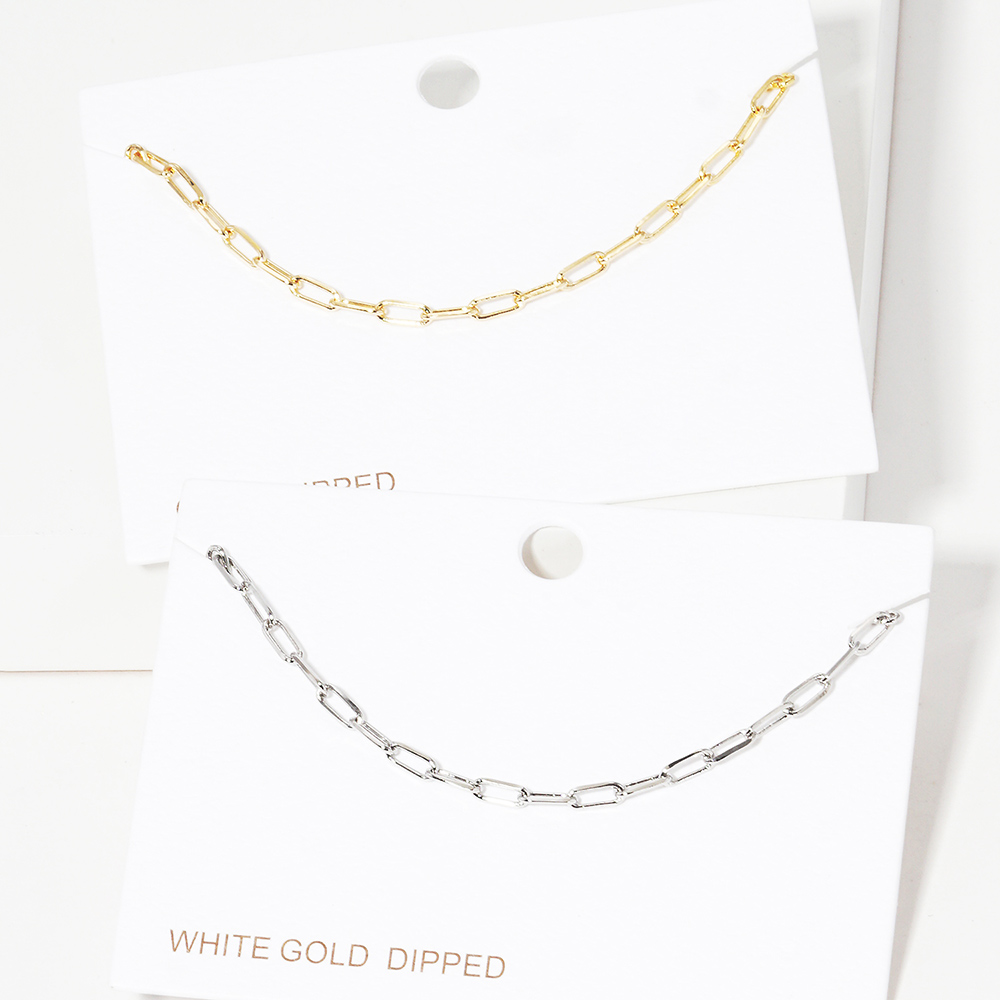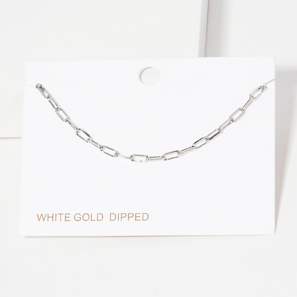 White Gold Dipped Open Metal Oval Link Bracelet