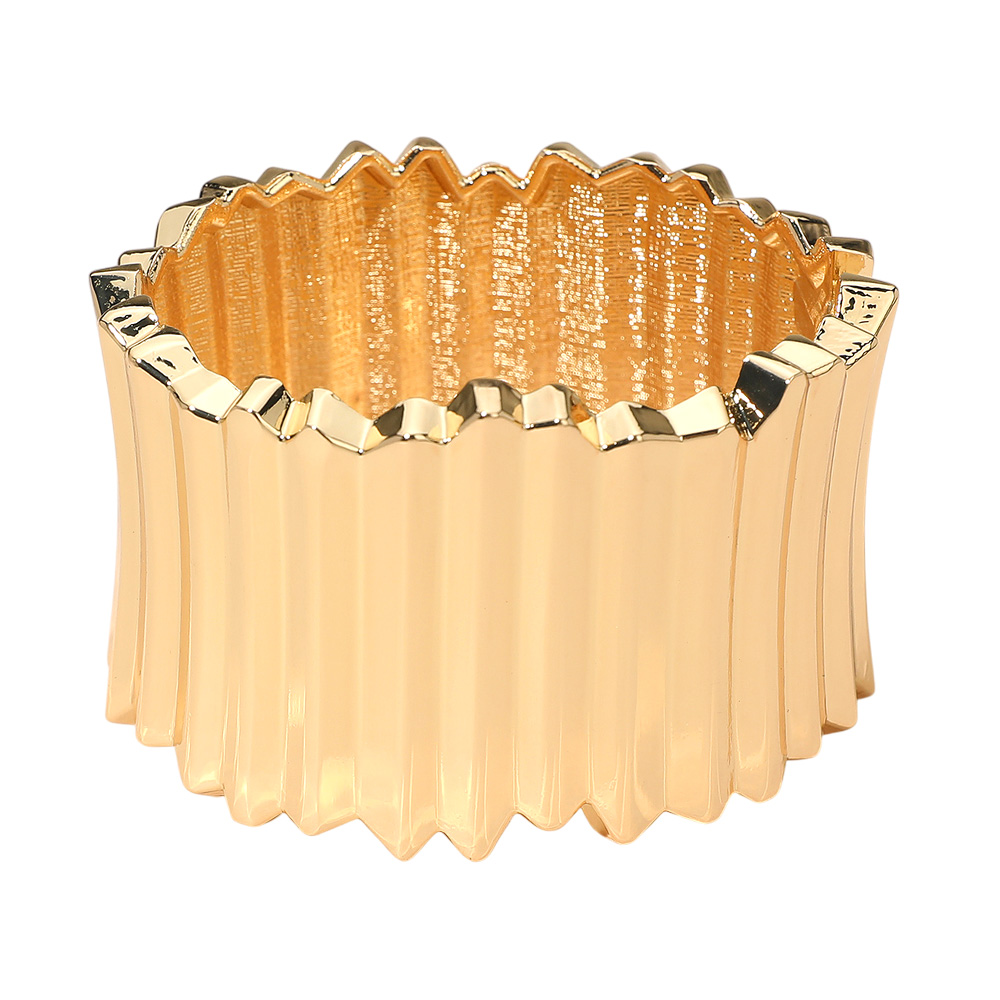 • Upgrade your accessory collection with this wide pleated bangle bracelet featuring a sleek, modern design. Perfect for adding sophistication to both casual and formal looks, this bold statement piece brings elegance and contemporary flair to any outfit.