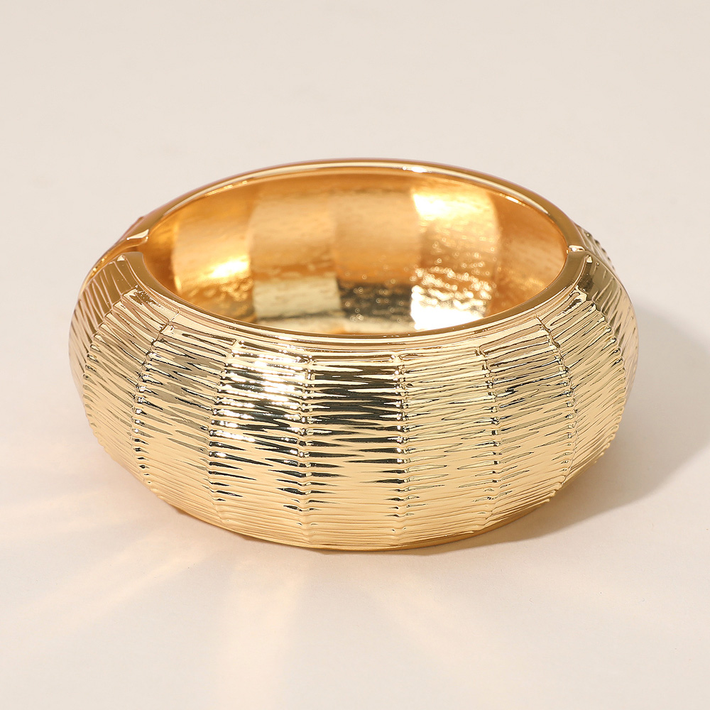 • Make a bold impression with this textured wide bangle bracelet featuring a sleek, eye-catching design. Perfect for elevating casual or dressy outfits, this statement piece adds a touch of modern elegance and sophistication to your accessory collection.