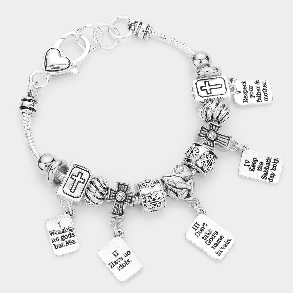 10 Commandments Heart Cross Bible Multi Bead Bracelet