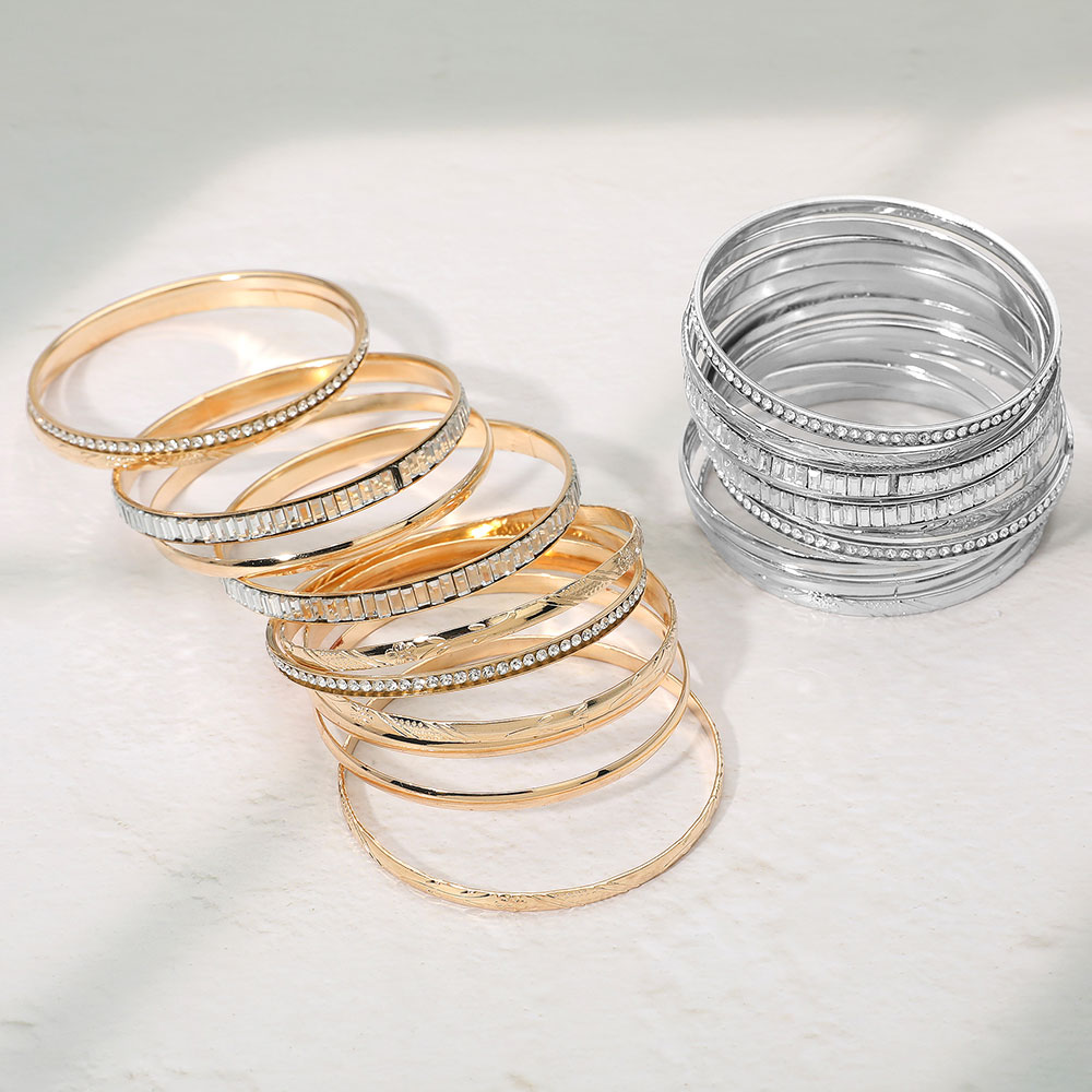 11PCS - Rhinestone Accented Multi Layered Bangle Bracelets