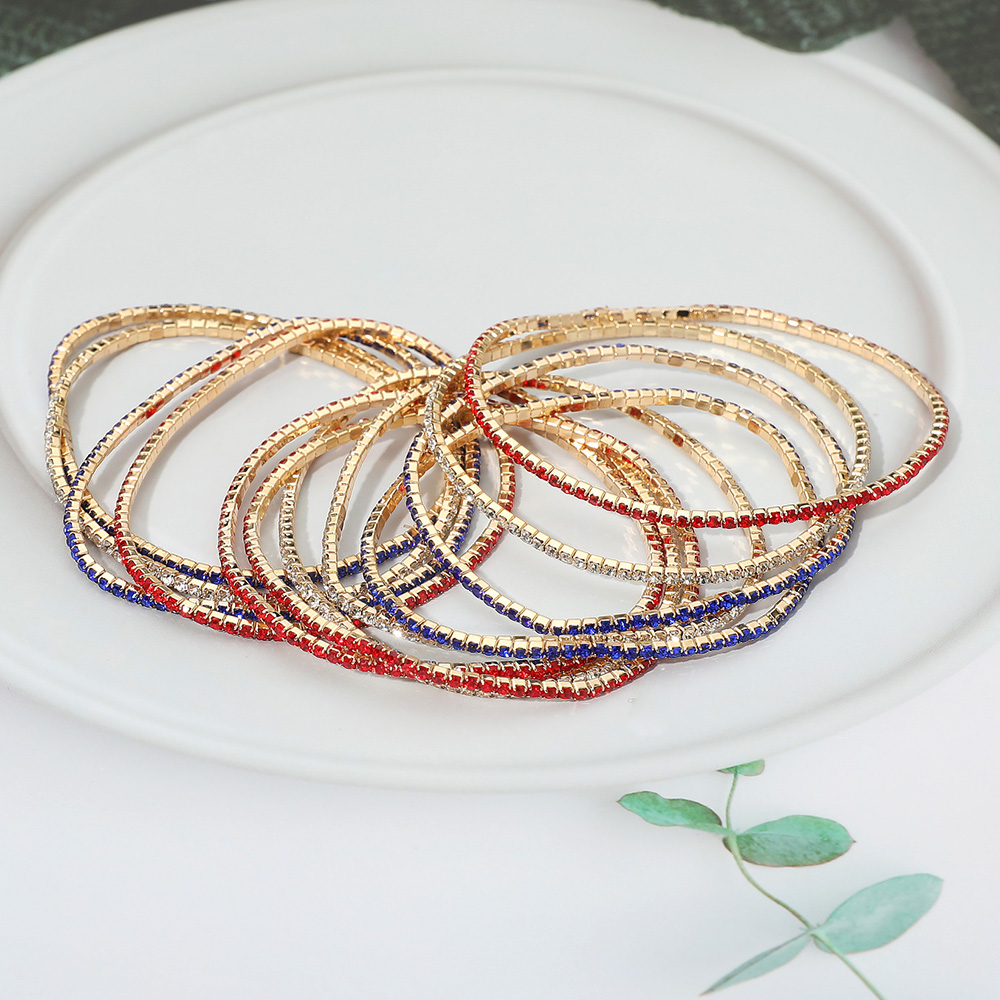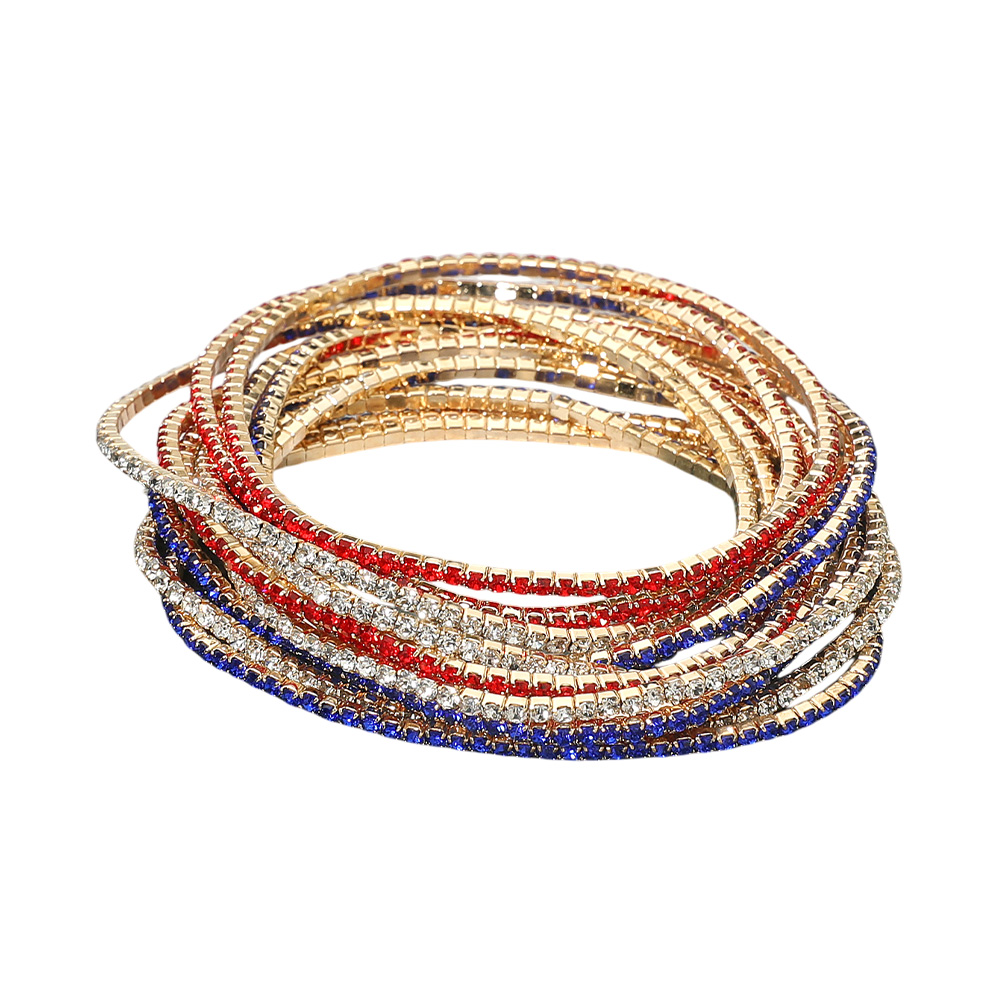 Details • Size : 1.2" H • Stretchable • Sparkling 12-piece stretch bracelet set adorned with multicolor rhinestones. Lightweight and flexible, perfect for stacking or wearing solo to add bold sparkle and festive flair to any outfit. • Lead and Nickel Compliant