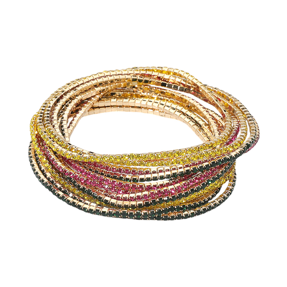 Details • Size : 1.2" H • Stretchable • Add vibrant style with this set of 12 stackable multicolor stretch bracelets, designed with shimmering accents for a bold layered look. Flexible and lightweight, they’re perfect for mixing and matching to create versatile fashion statements for any occasion. • Lead and Nickel Compliant