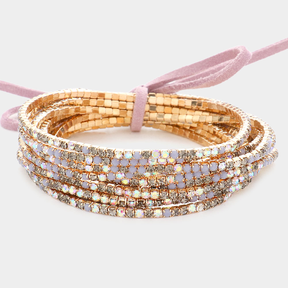 12PCS - Ribbon Colorful Rhinestone Layered Stretch Bracelets