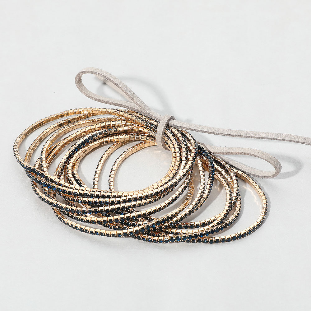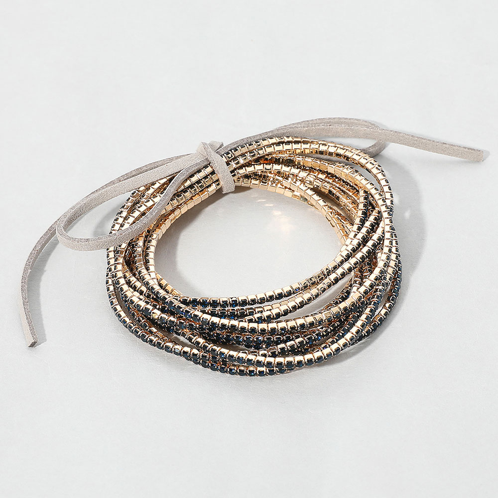 18K Gold Dipped Rhinestone Ball Chain Layered Adjustable Cinch Pull Tie Bracelet