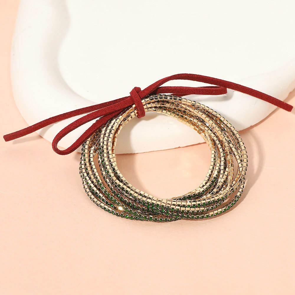 • Colorful wrap bracelet featuring multiple strands with shimmering bead accents and an adjustable tie closure. A playful accessory perfect for casual and festive looks.