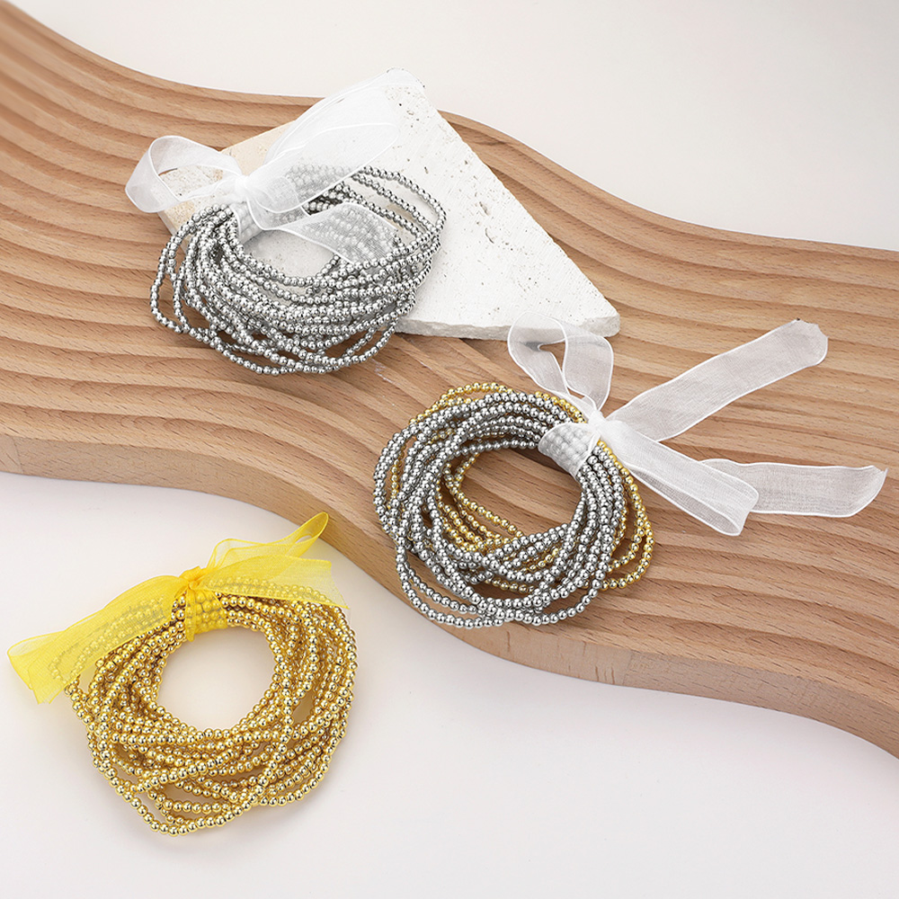 15PCS - Metal Ball Beaded Stretch Multi Layered Bracelets
