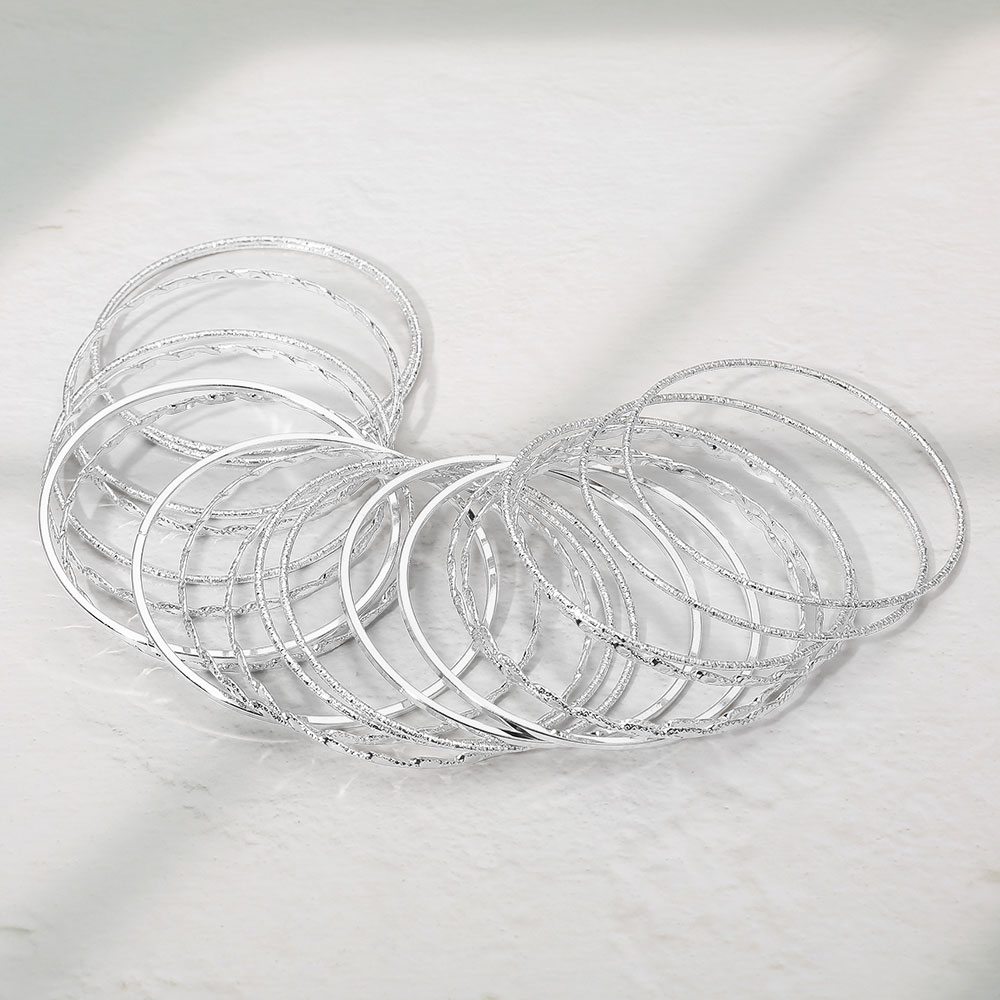 21PCS - Textured Metal Stackable Multi Layered Bangle Bracelets