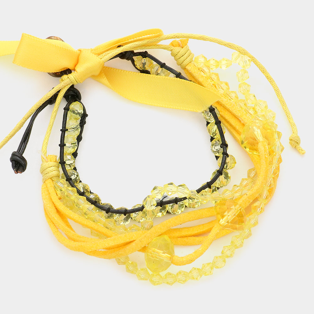 2PCS - Bead Faux Suede Adjustable Cinch Pull Tie Bracelets