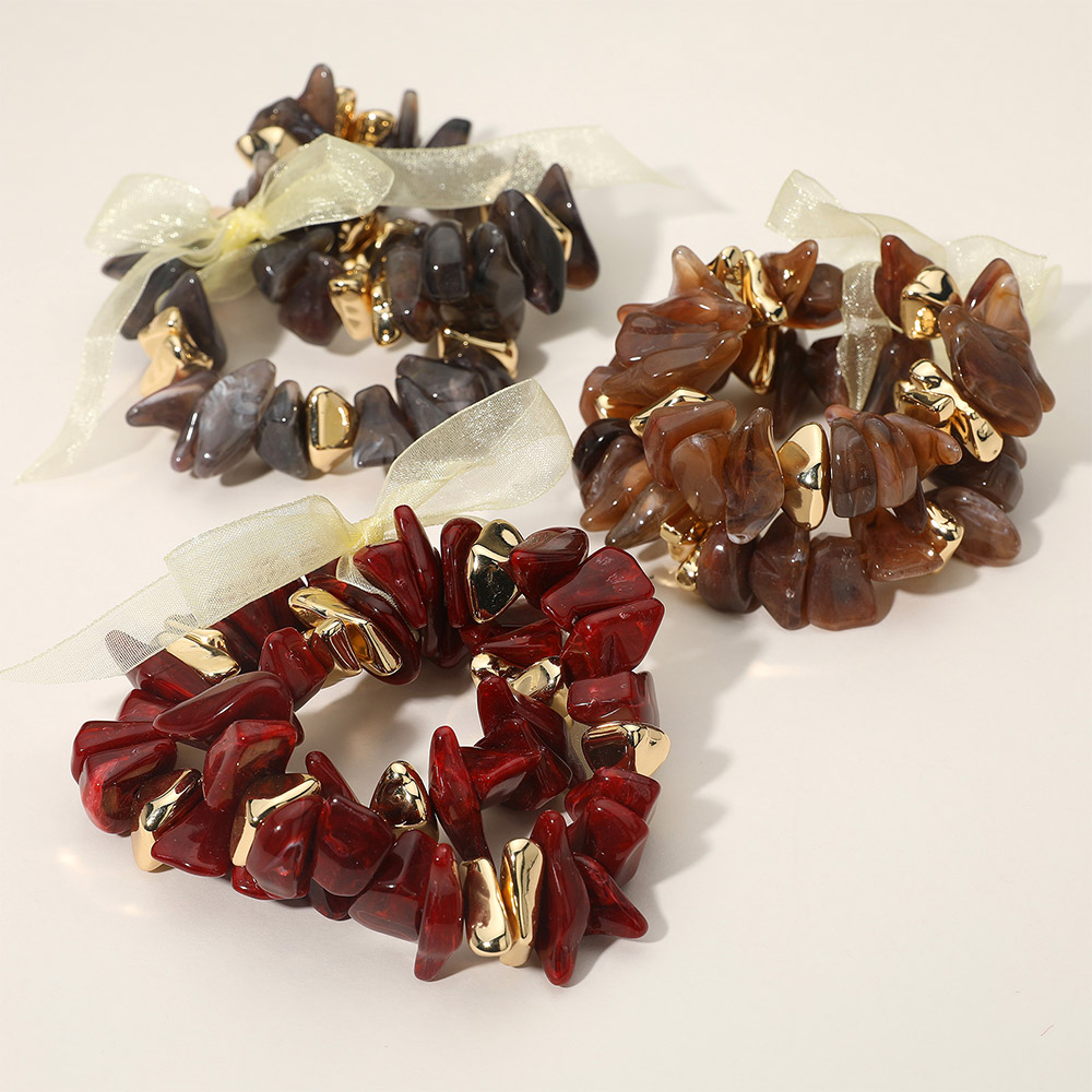 • Elevate your style with this chunky stone bead stretch bracelet featuring polished accents and a delicate ribbon detail. Its bold yet elegant design makes it a versatile accessory, perfect for adding texture and personality to both everyday looks and special occasions.