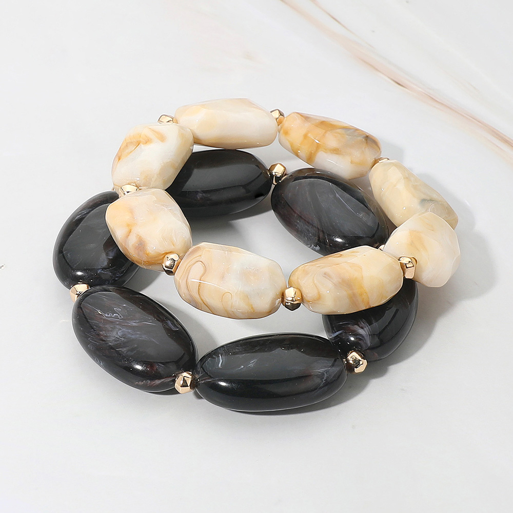 2PCS - Chunky Oval Pebble Beaded Stretch Multi Layered Bracelets