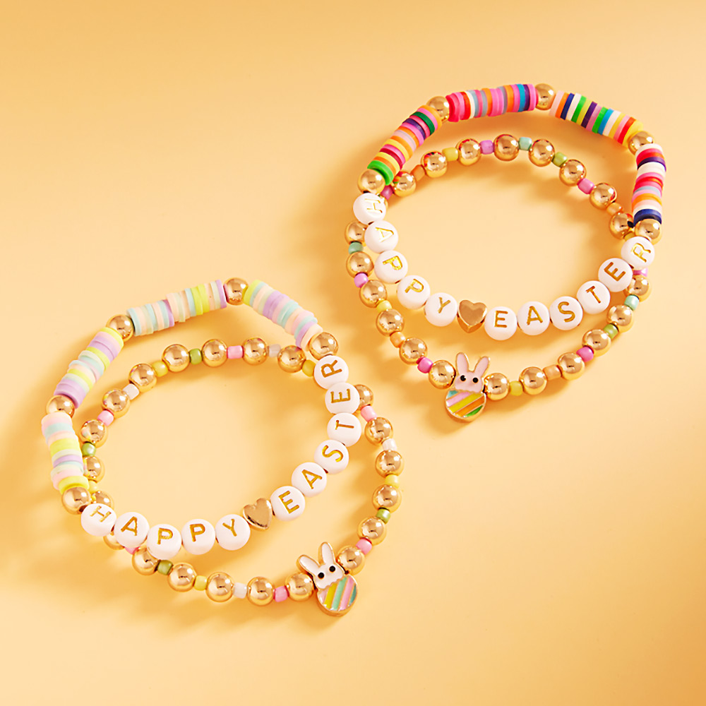 Details • Size : 0.9" H • Stretchable • Festive stretch bracelet set featuring rounded bead styling and playful letter charms spelling a cheerful seasonal message, accented with a cute focal charm. Designed for easy slip-on wear and stacking, perfect for gifting or adding a joyful touch to everyday looks. • Lead and Nickel Compliant