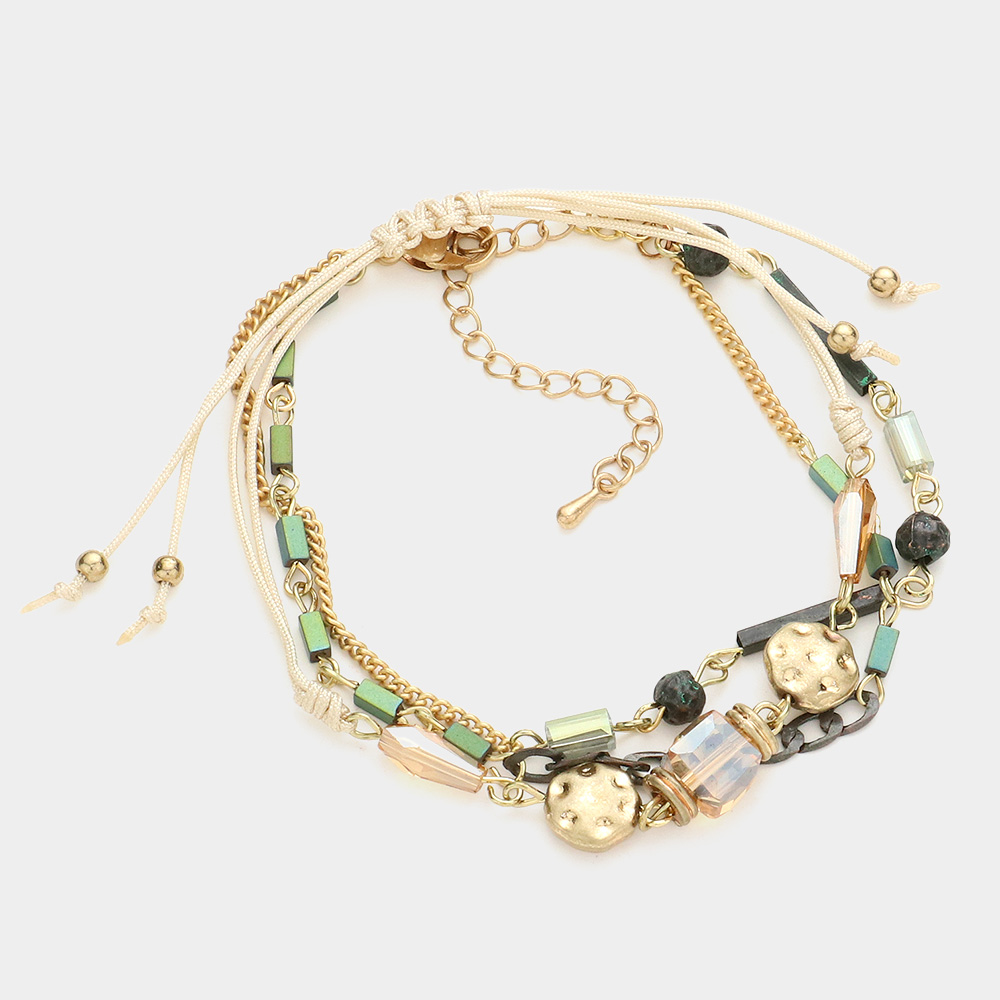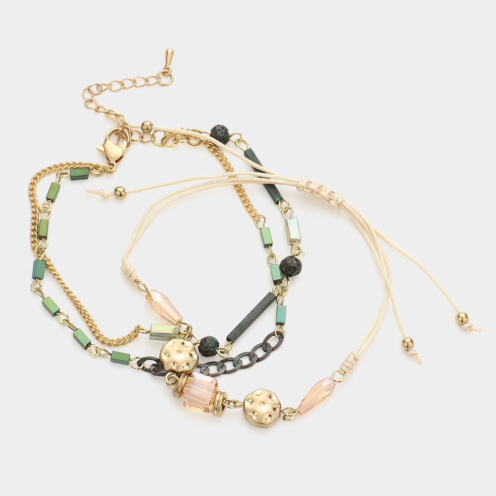 3PCS - Semi Precious Stone Metal Ball Stretch Bracelets