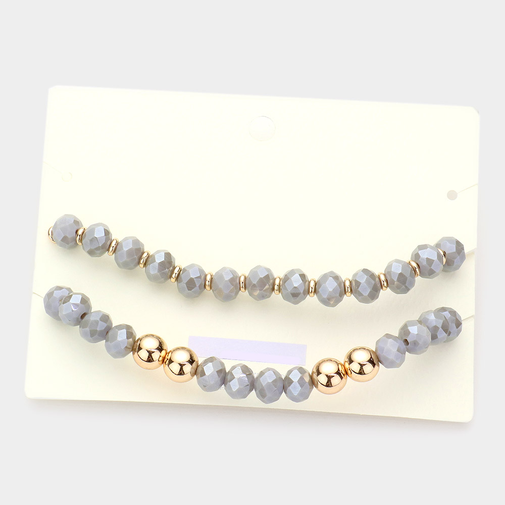 2PCS - LOVE Message Faceted Beaded Stretch Bracelets