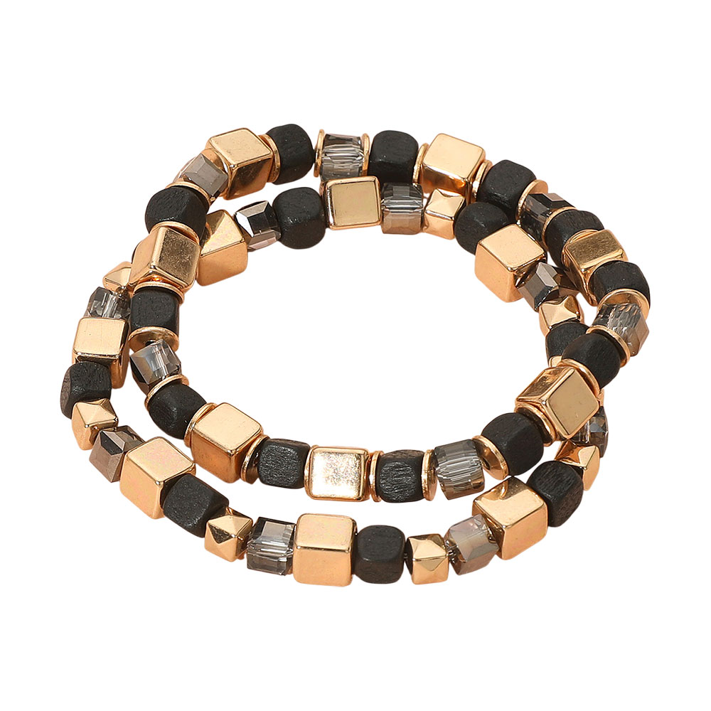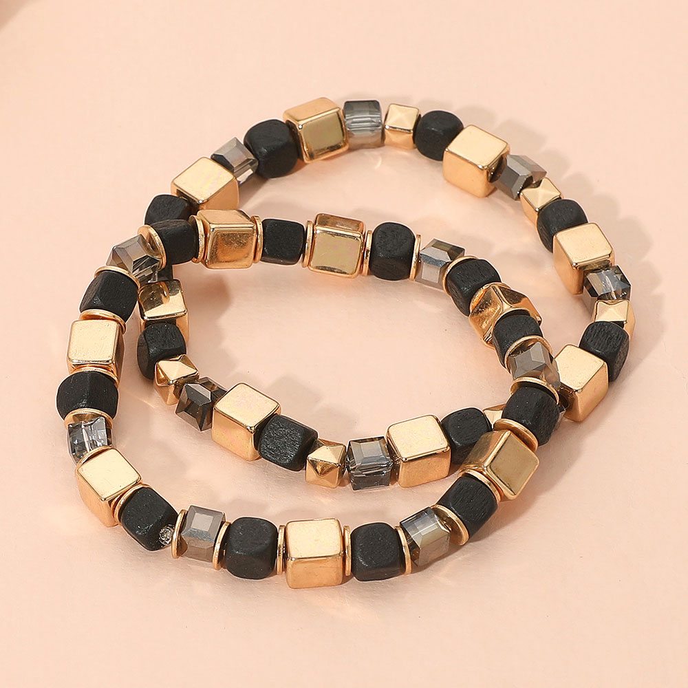 2PCS - Mixed Wooden Cube Beaded Stretch Multi Layered Bracelets