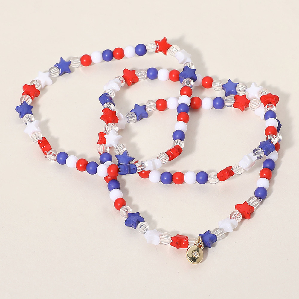 3PCS - American USA Star Beaded Stretch Multi Layered Bracelets