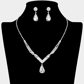 Emerald Cut Stone Cluster Pendant Pointed Teardrop Stone Cluster Link Evening Necklace