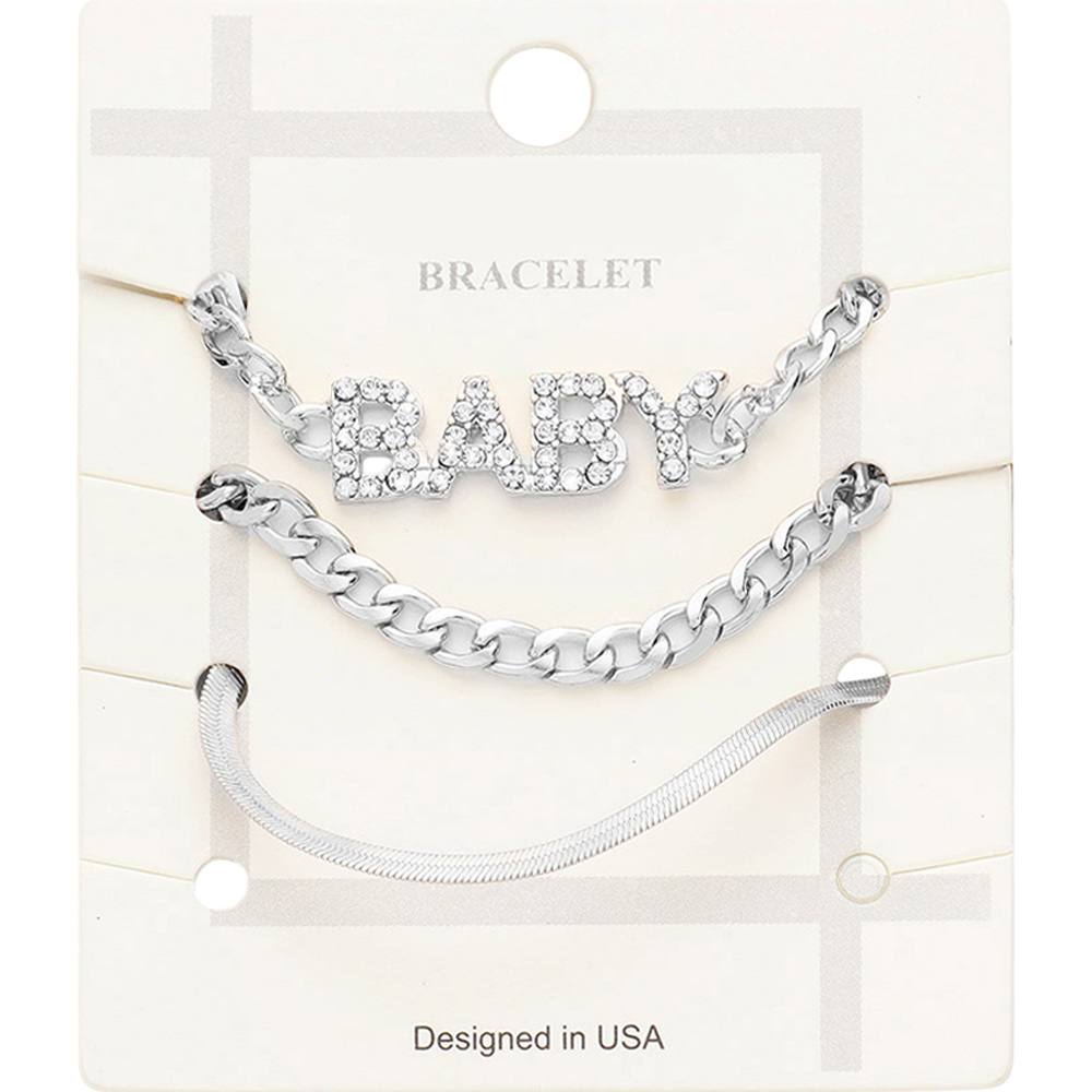 3PCS - BABY Rhinestone Embellished Metal Chain Bracelets