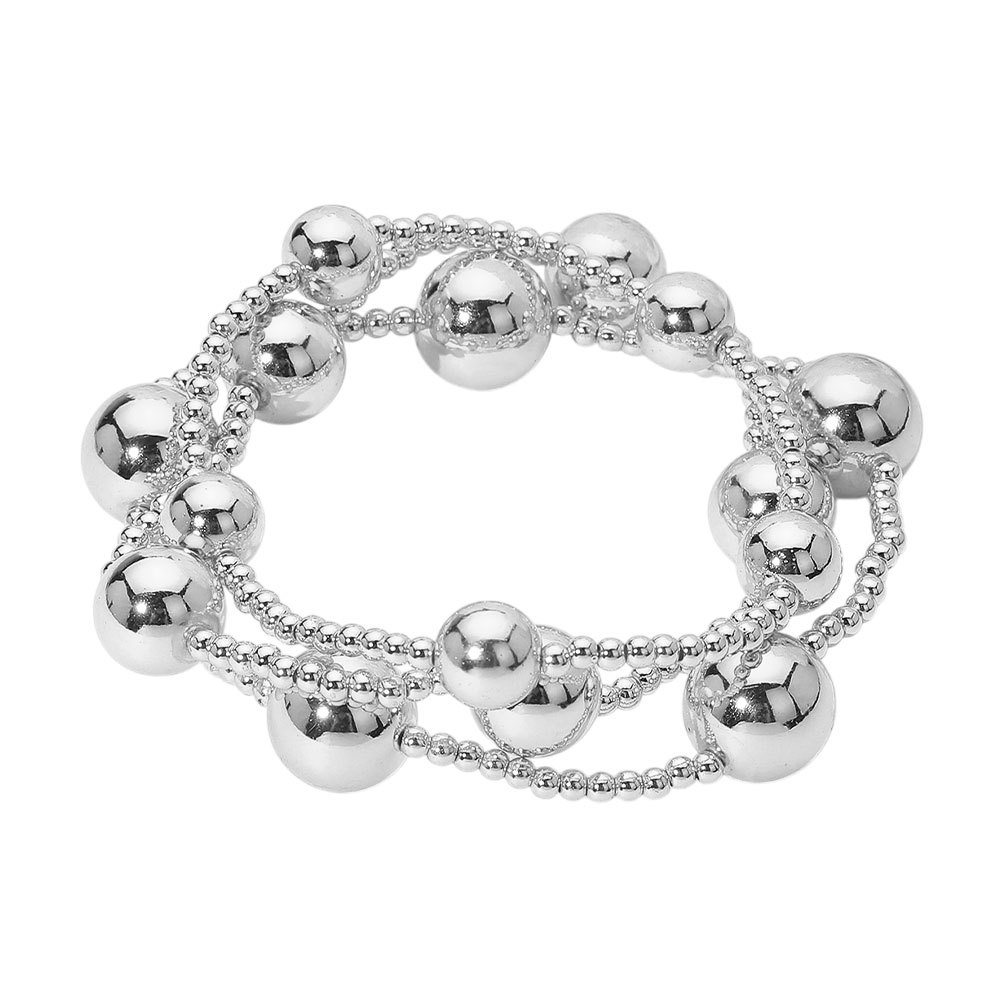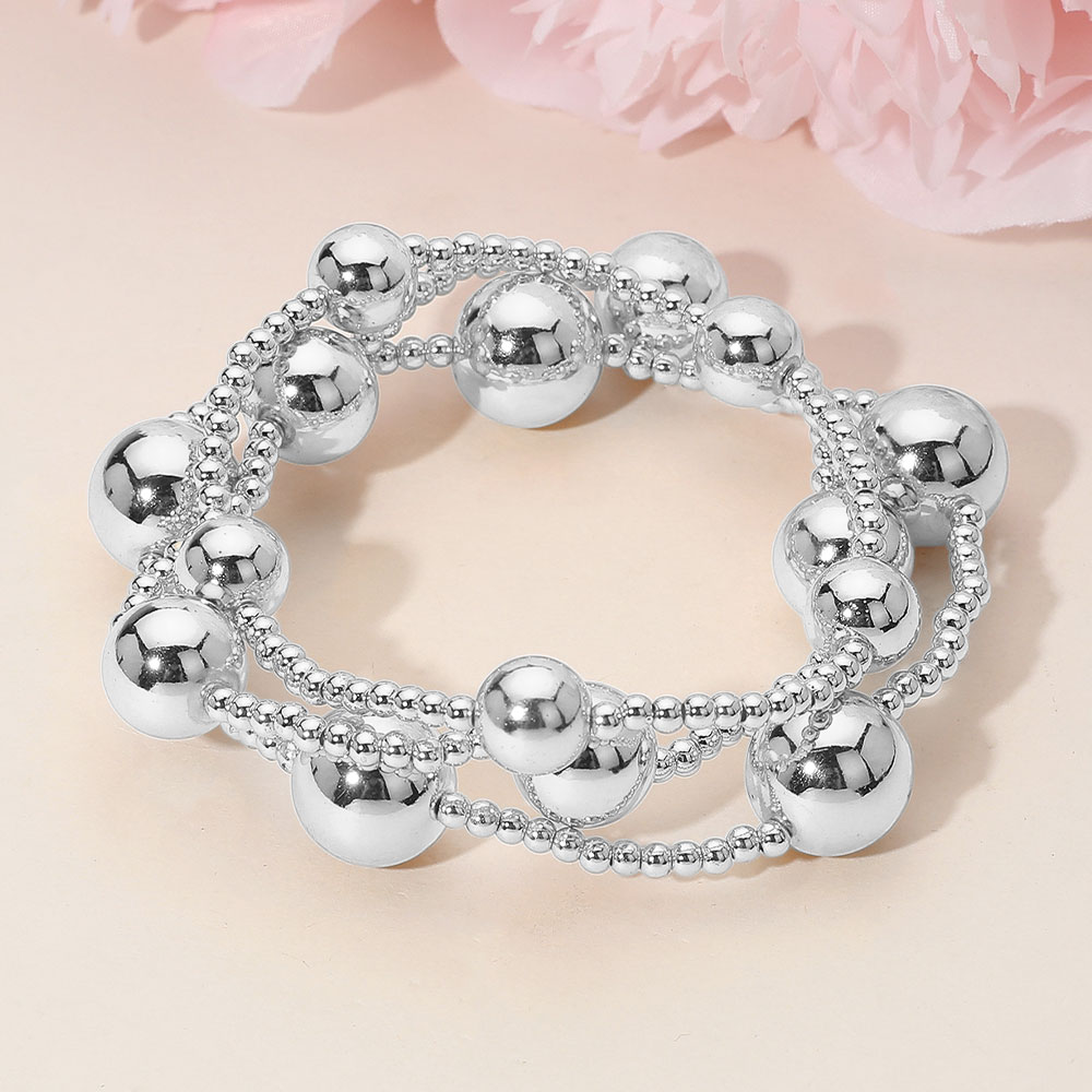 3PCS - Bold Metal Ball Beaded Stretch Multi Layered Bracelets