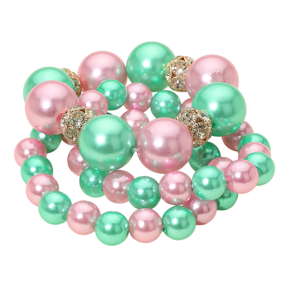 Details • Size : 1.75" H • Stretchable • Elevate your style with this multi-layer pearl bead stretch bracelet featuring lustrous round beads and sparkling crystal accents. Designed for comfort and elegance, it’s perfect for parties, Mardi Gras celebrations, or adding a festive touch to any outfit. • Lead and Nickel Compliant
