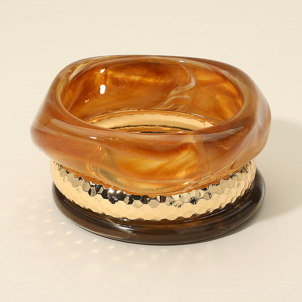 3PCS - Chunky Abstract Resin Hammered Metal Bangle Multi Layered Bracelets