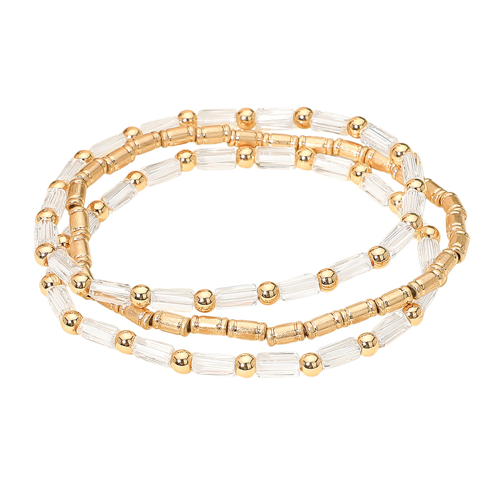 3PCS - Faceted Tube Beaded Stretch Multi Layered Bracelets