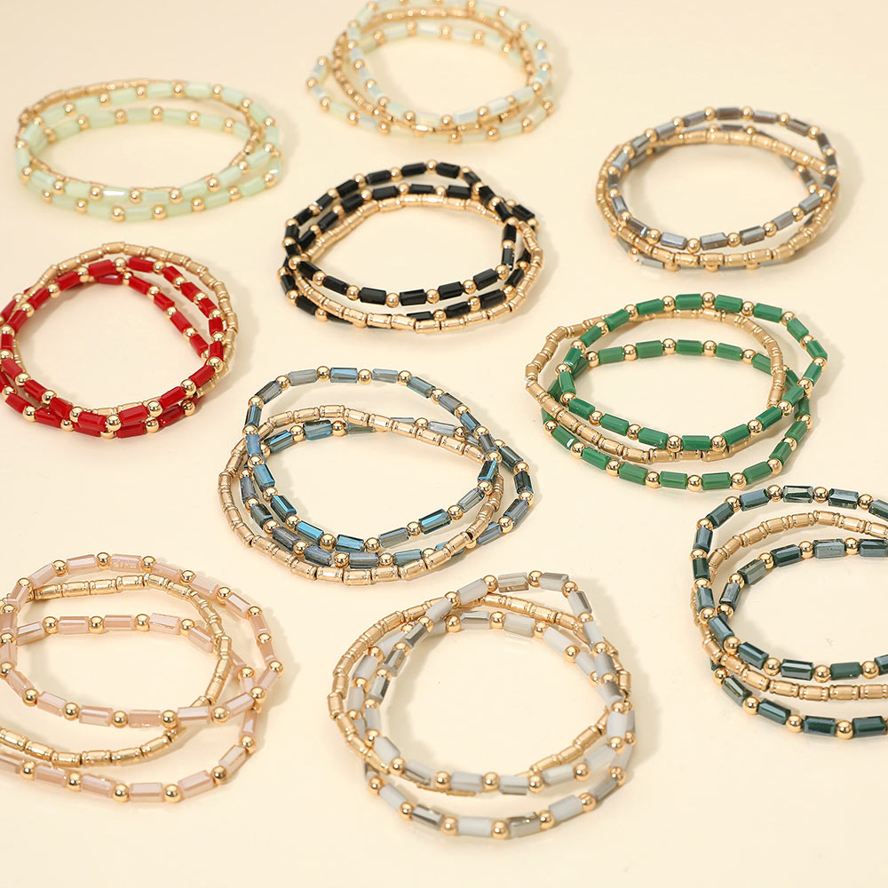 3PCS - Faceted Tube Beaded Stretch Multi Layered Bracelets