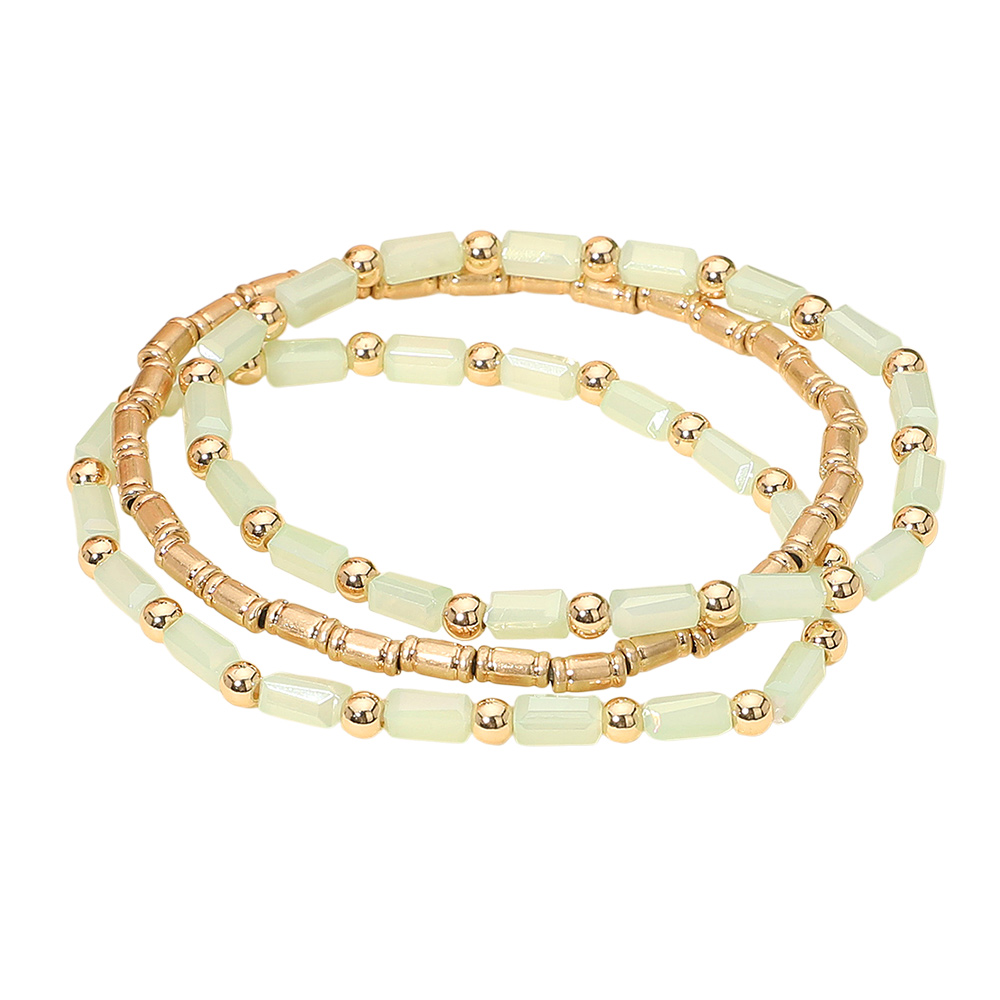 3PCS - Faceted Tube Beaded Stretch Multi Layered Bracelets