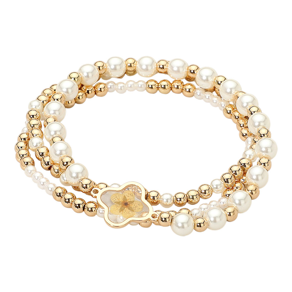 3PCS - Floral Accent Pearl Metal Ball Beaded Stretch Multi Layered Bracelets 3PCS - Floral Accent Pearl Metal Ball Beaded Stretch Multi Layered Bracelets 3PCS - Floral Accent Pearl Metal Ball Beaded Stretch Multi Layered Bracelets