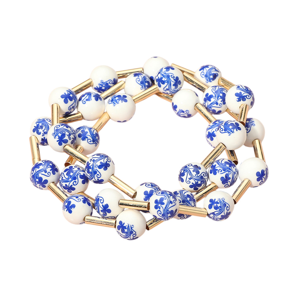 3PCS - Floral Ceramic Ball Beaded Stretch Multi Layered Bracelets