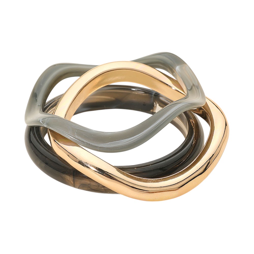 3PCS - Geometric Mixed Resin Metal Stackable Bangle Multi Layered Bracelets