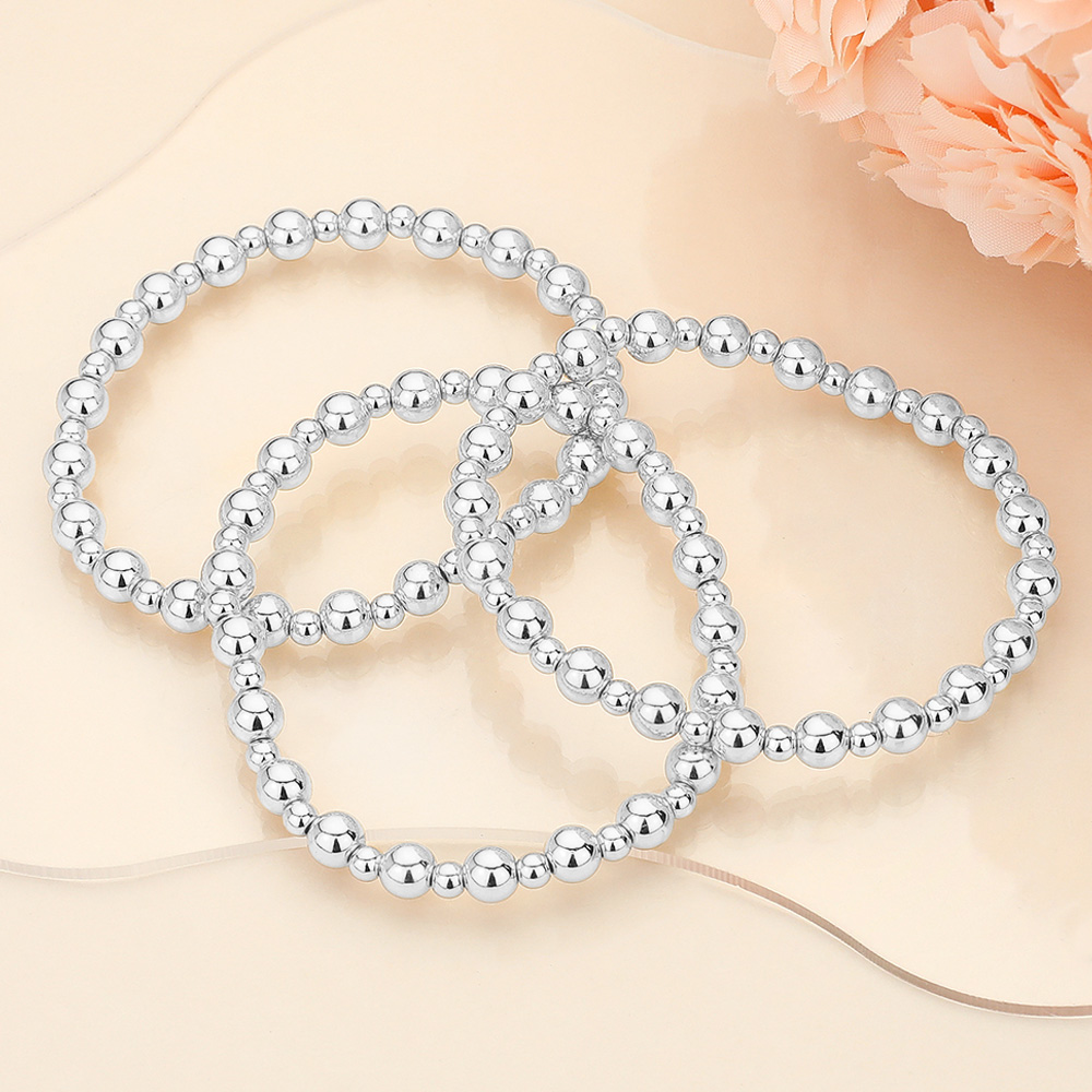 3PCS - Metal Ball Beaded Stretch Multi Layered Bracelets