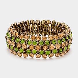 Stone Paved Quatrefoil Pointed Two Tone Braided Metal Cuff Bracelet