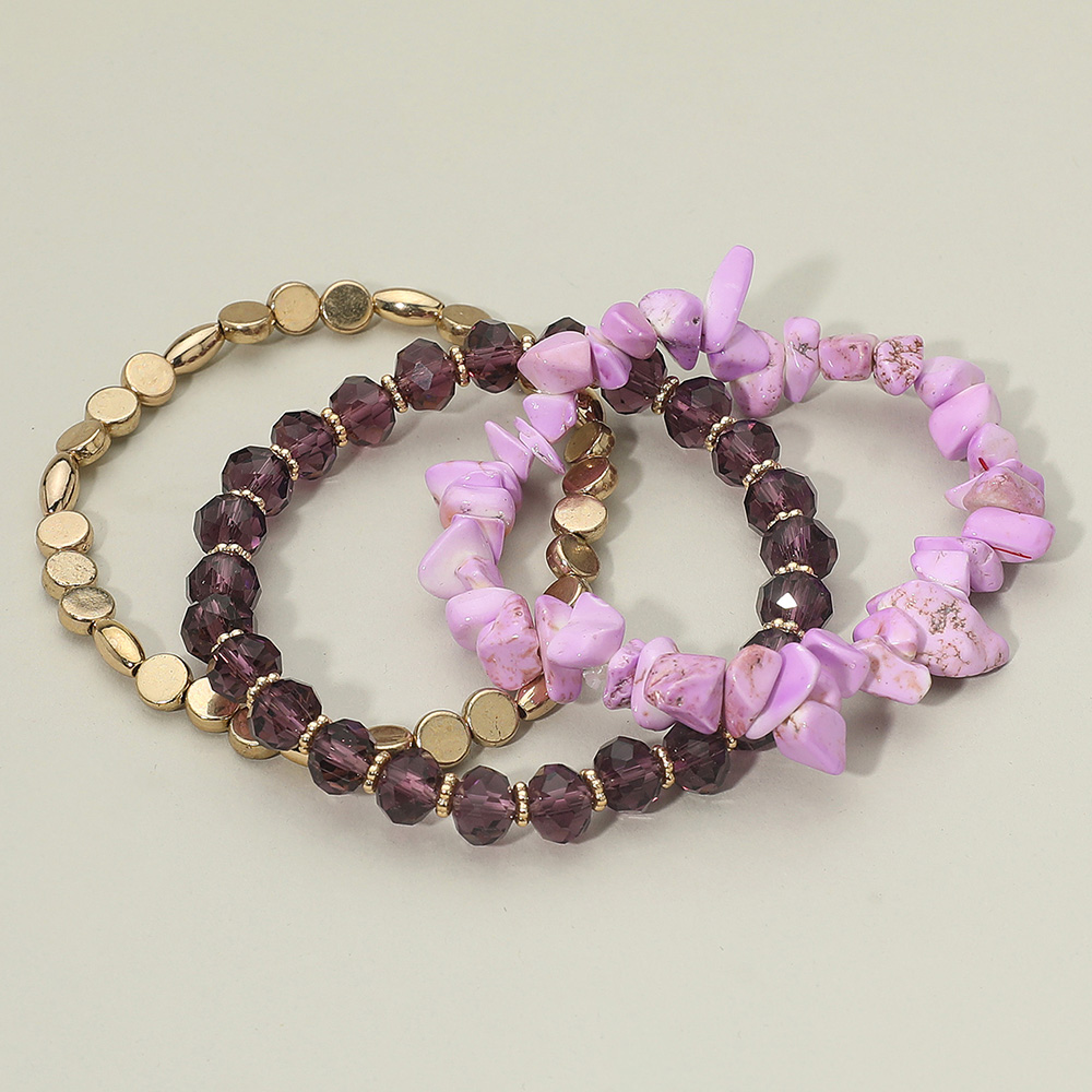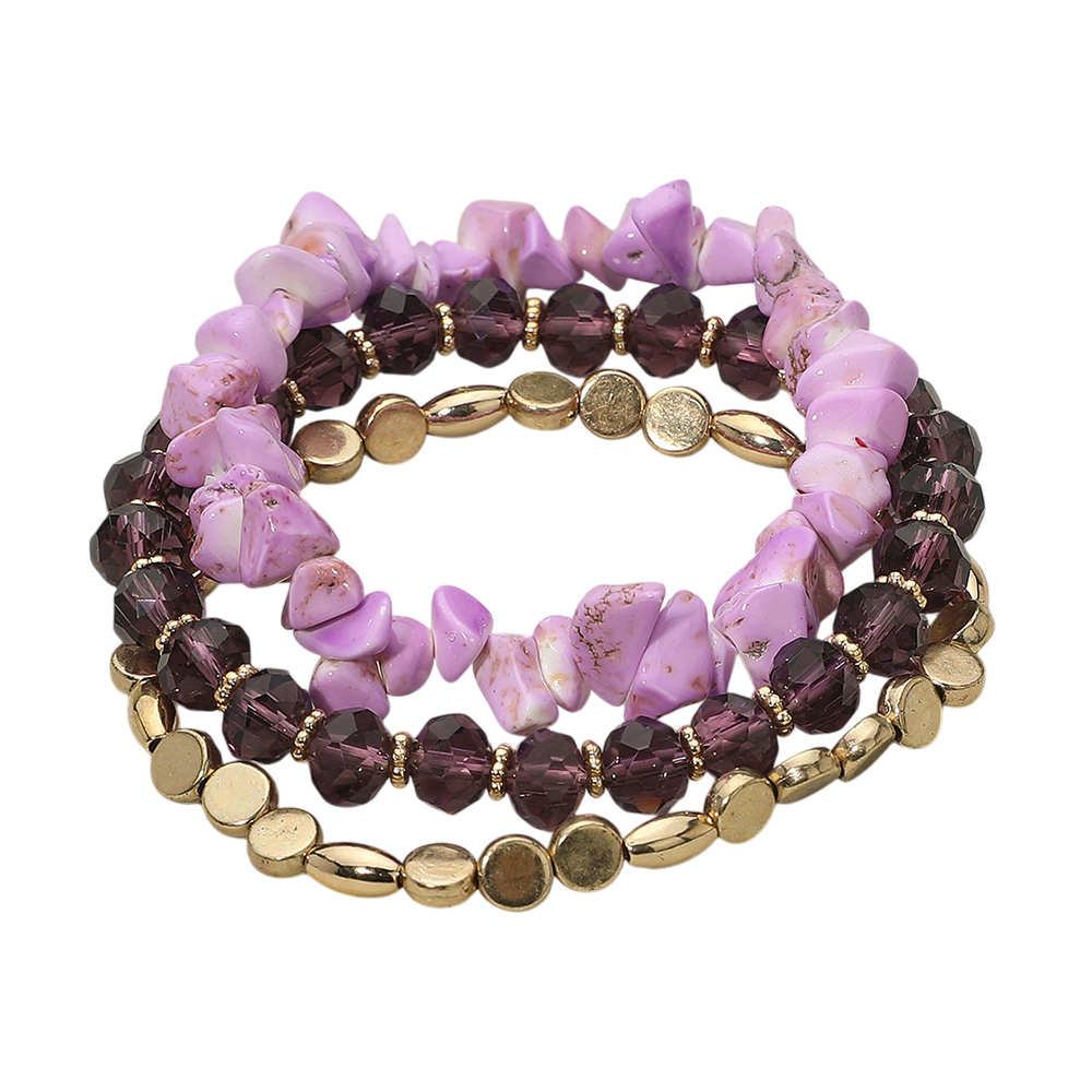 3PCS - Natural Stone Faceted Beaded Stretch Bracelets