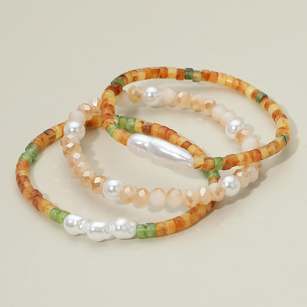 Details • Size : 0.75" H • Stretchable • This beaded stretch bracelet set combines faceted glass beads and faux pearl accents for a refined layered look. With its lightweight and flexible design, this multi-strand bracelet set is perfect for stacking and adds a touch of sophistication to any outfit. • Lead and Nickel Compliant