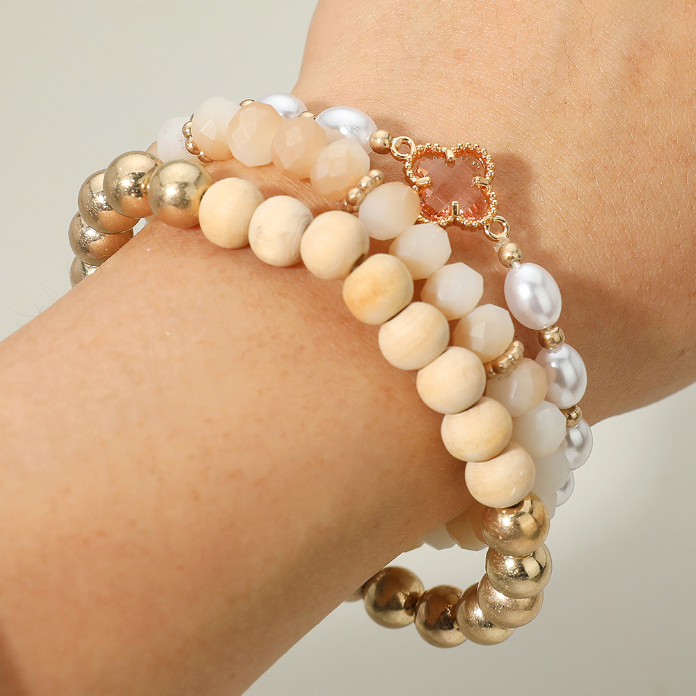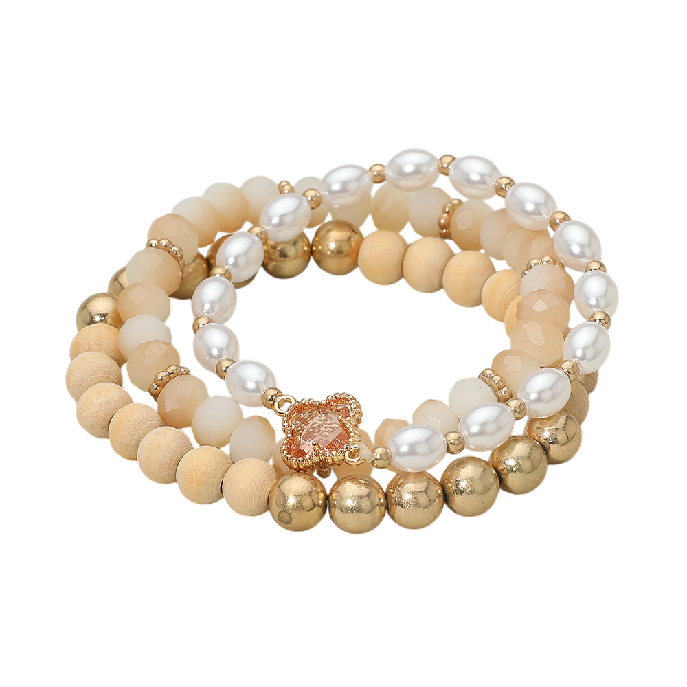 Details • Size : 1.25" H • Stretchable • Enhance your accessory collection with this layered beaded stretch bracelet set featuring smooth, faceted, and pearl-style beads. Complete with metallic accents and a decorative charm, this versatile bracelet stack adds a chic finishing touch to both casual and dressy outfits. • Lead and Nickel Compliant
