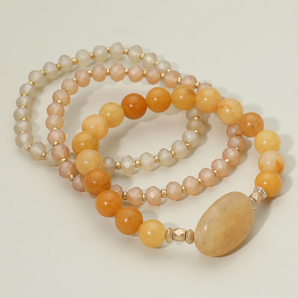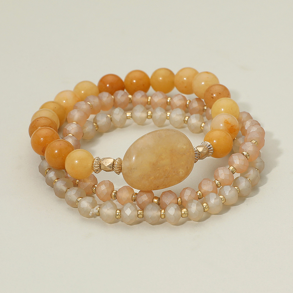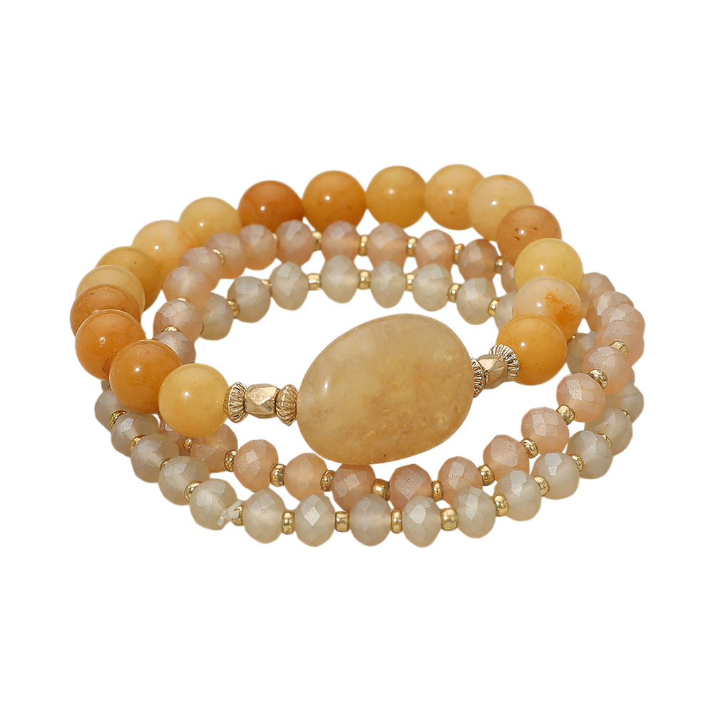 Details • Size : 1" H • Stretchable • This beautiful bracelet set features multiple strands of polished beads, centered with a bold accent stone for a touch of natural elegance. Designed for easy stacking, this versatile set pairs effortlessly with casual or dressy outfits, making it a timeless addition to any jewelry collection. • Lead and Nickel Compliant