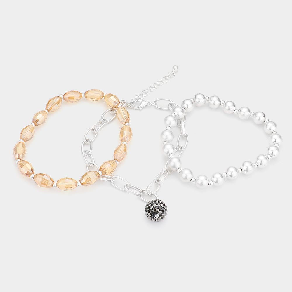 3PCS - Shamballa Ball Charm Metal Ball Beaded Bracelets