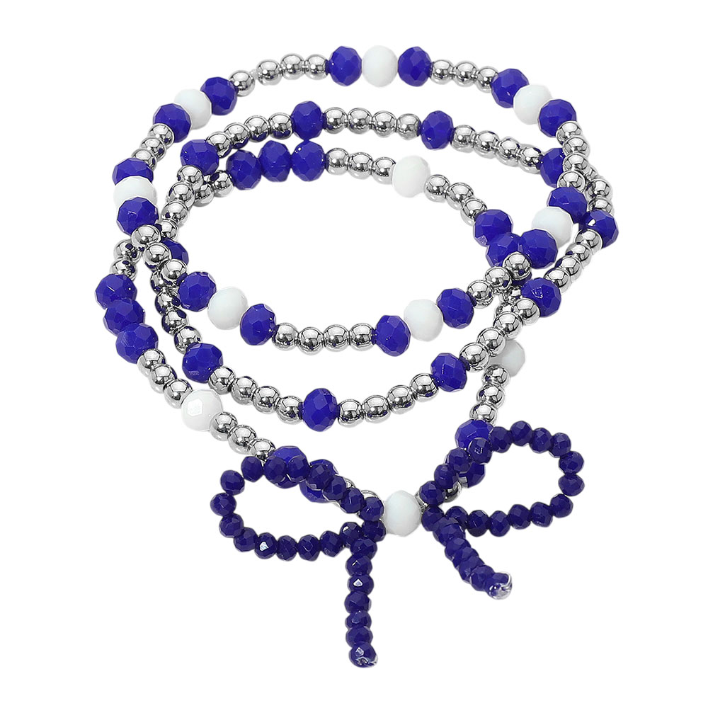 3PCS - Sports Team Theme Colored Bow Accent Faceted Beaded Stretch Multi Layered Bracelets