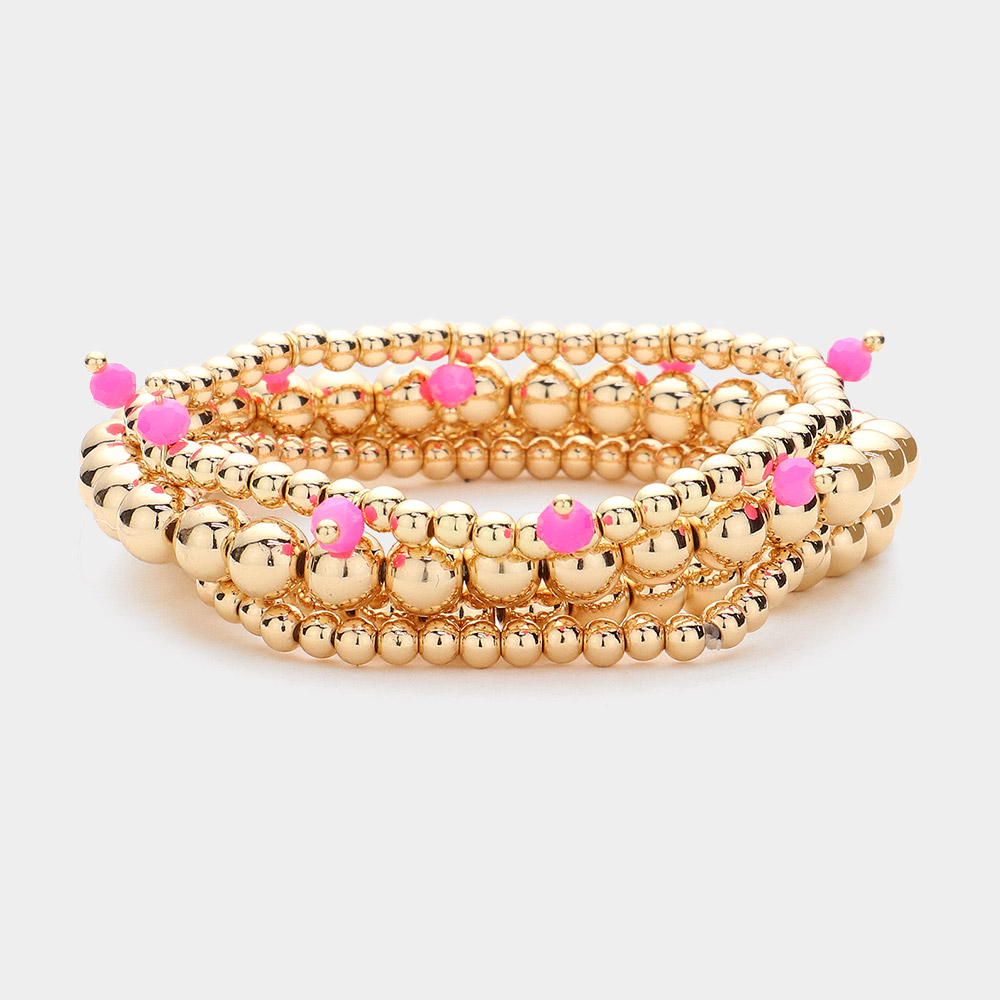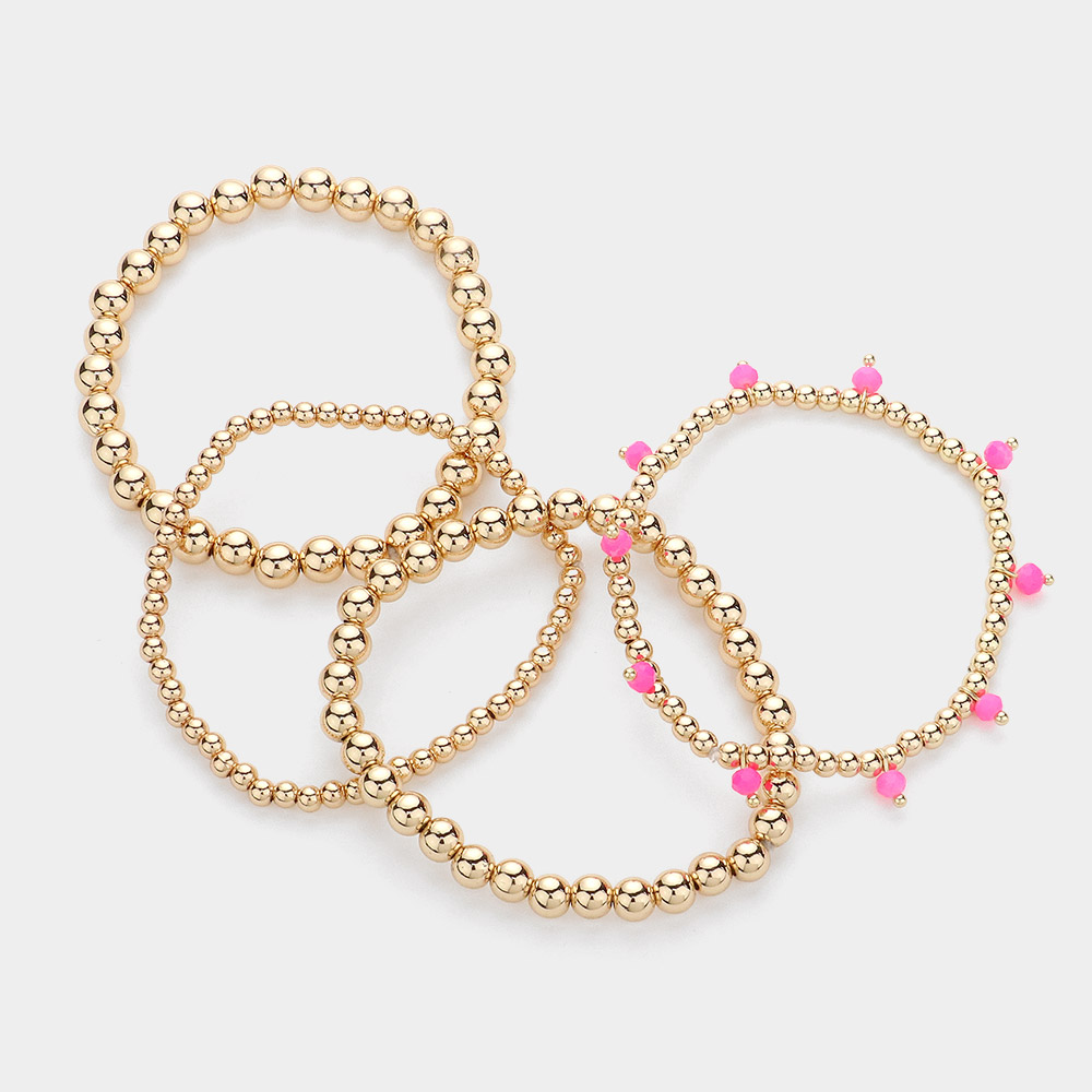 4PCS - Faceted Beads Station Metal Ball Stretch Multi Layered Bracelets