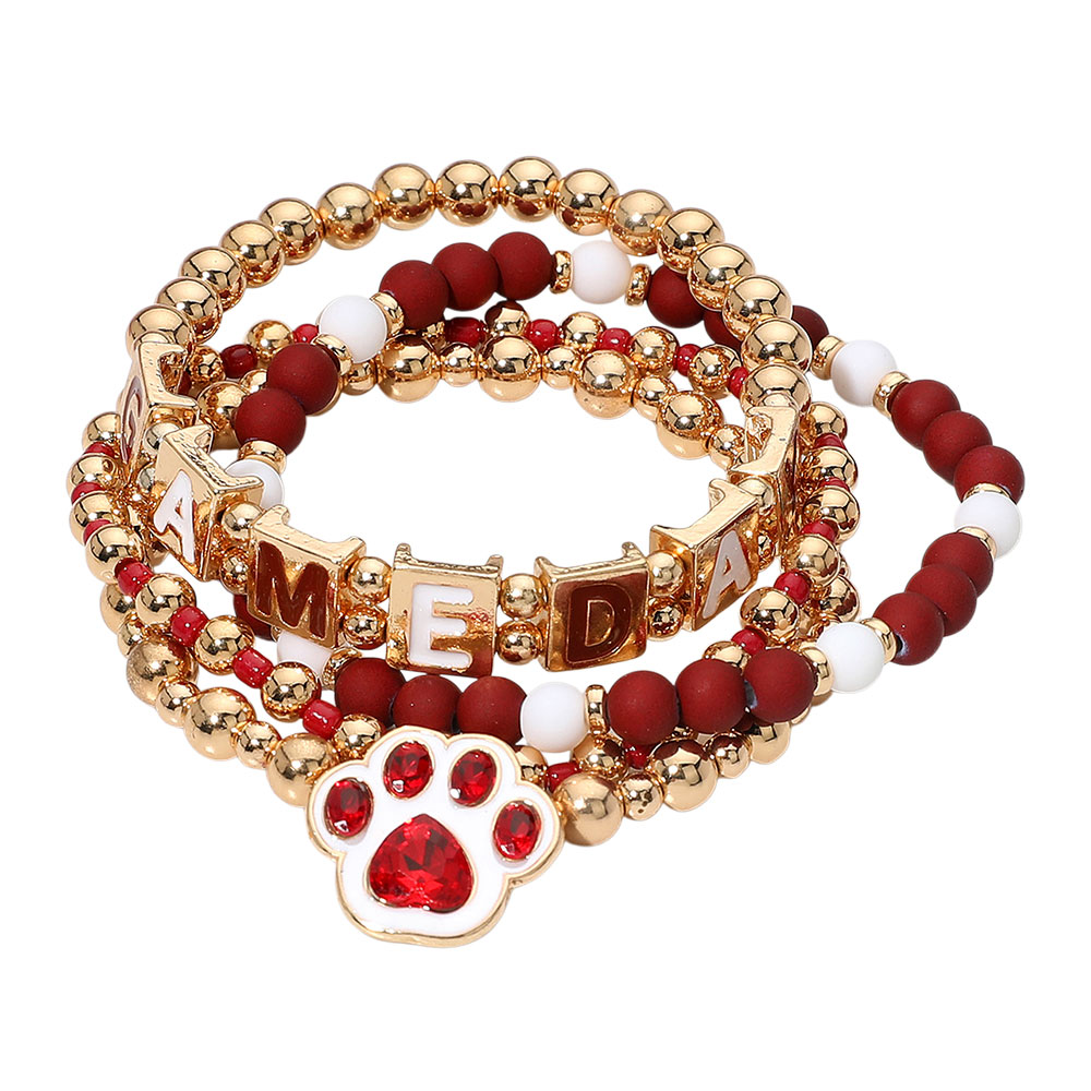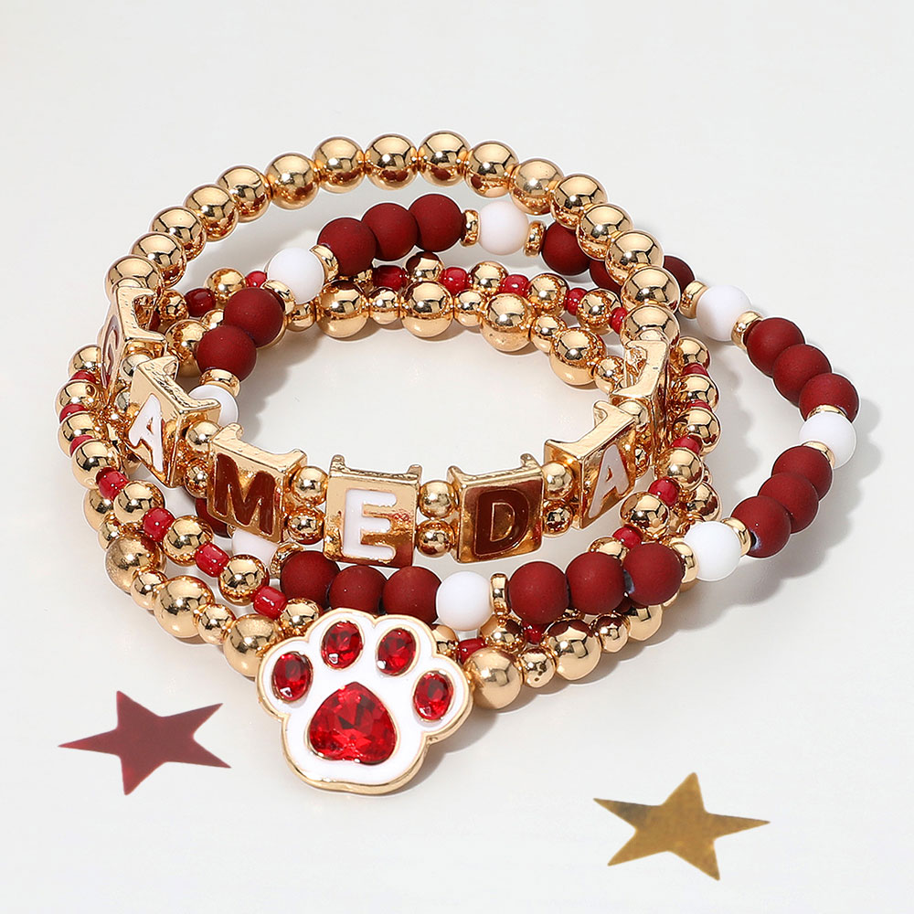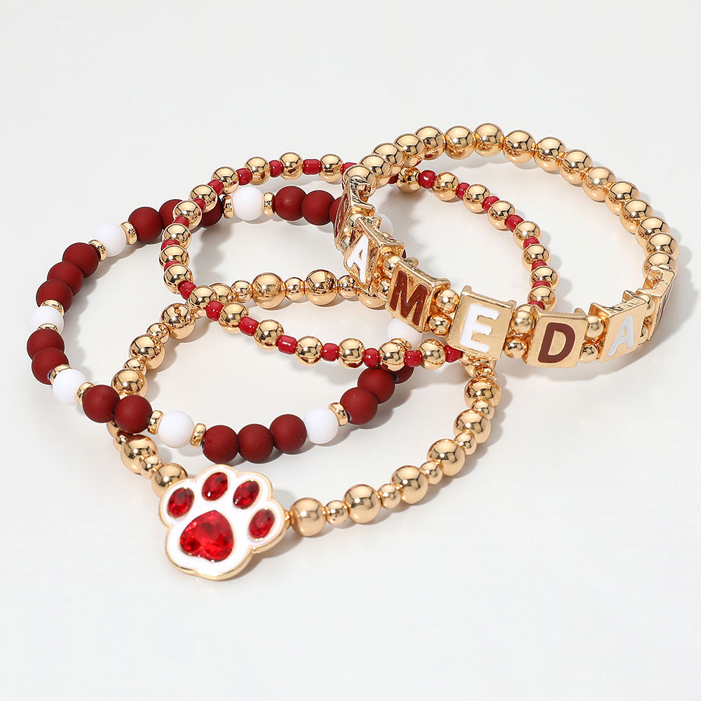 4PCS - GAME DAY Message Paw Charm Beaded Stretch Multi Layered Bracelets