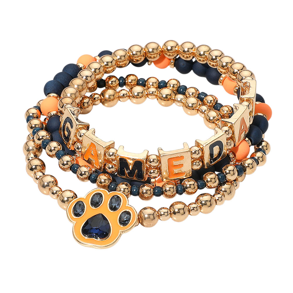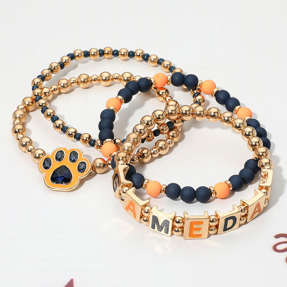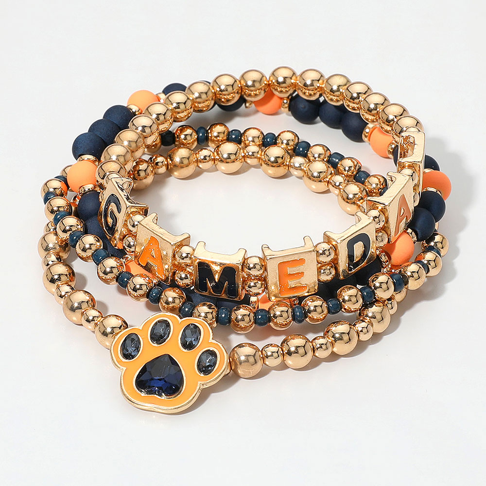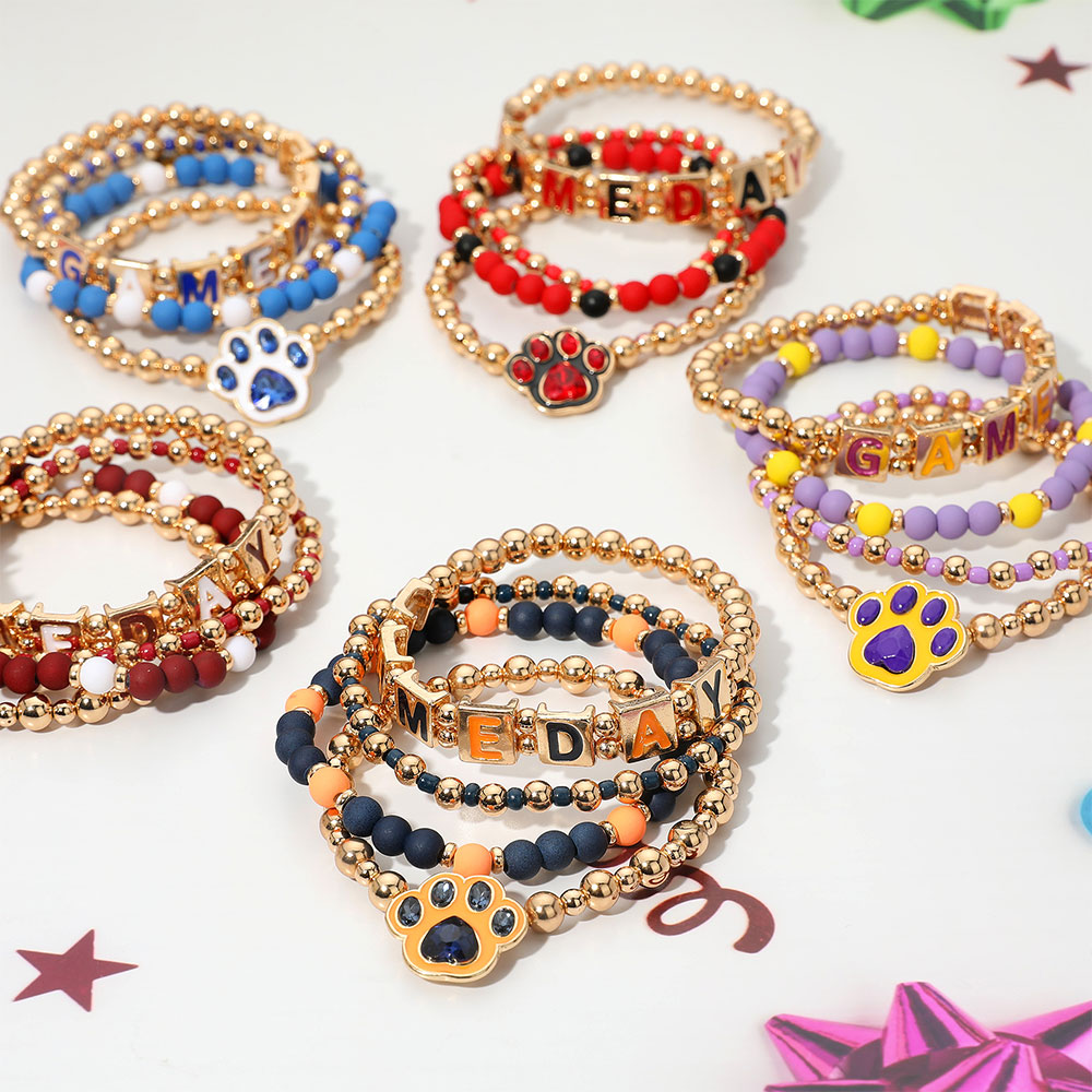 4PCS - GAME DAY Message Paw Charm Beaded Stretch Multi Layered Bracelets
