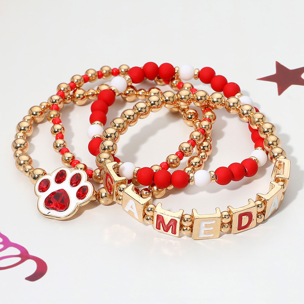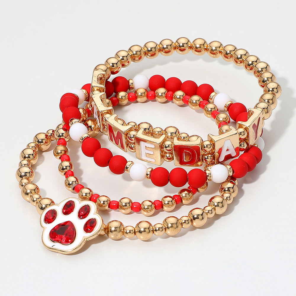 4PCS - GAME DAY Message Paw Charm Beaded Stretch Multi Layered Bracelets