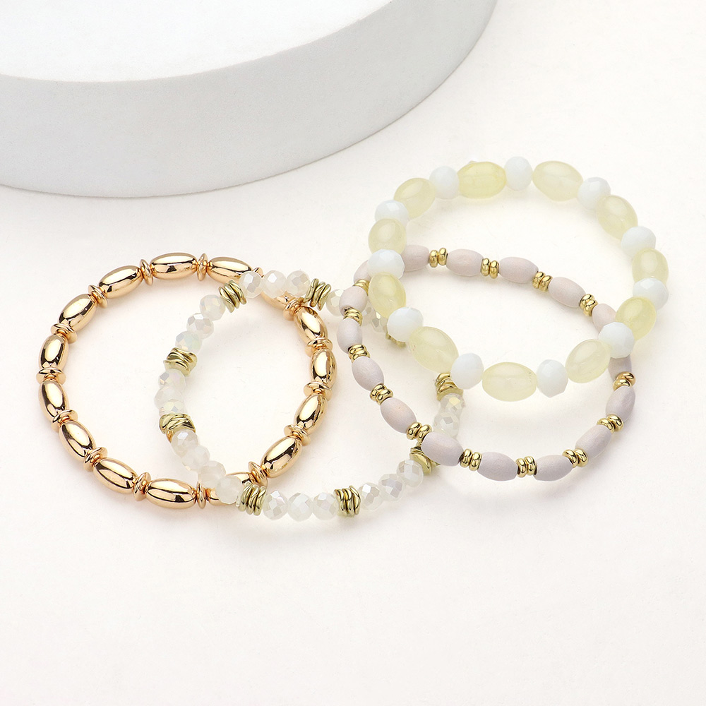 4PCS - Oval Wood Metal Faceted Beaded Stretch Multi Layered Bracelets