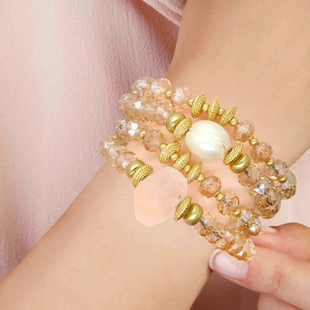 4PCS - Pearl Accented Faceted Beads Stretch Bracelets