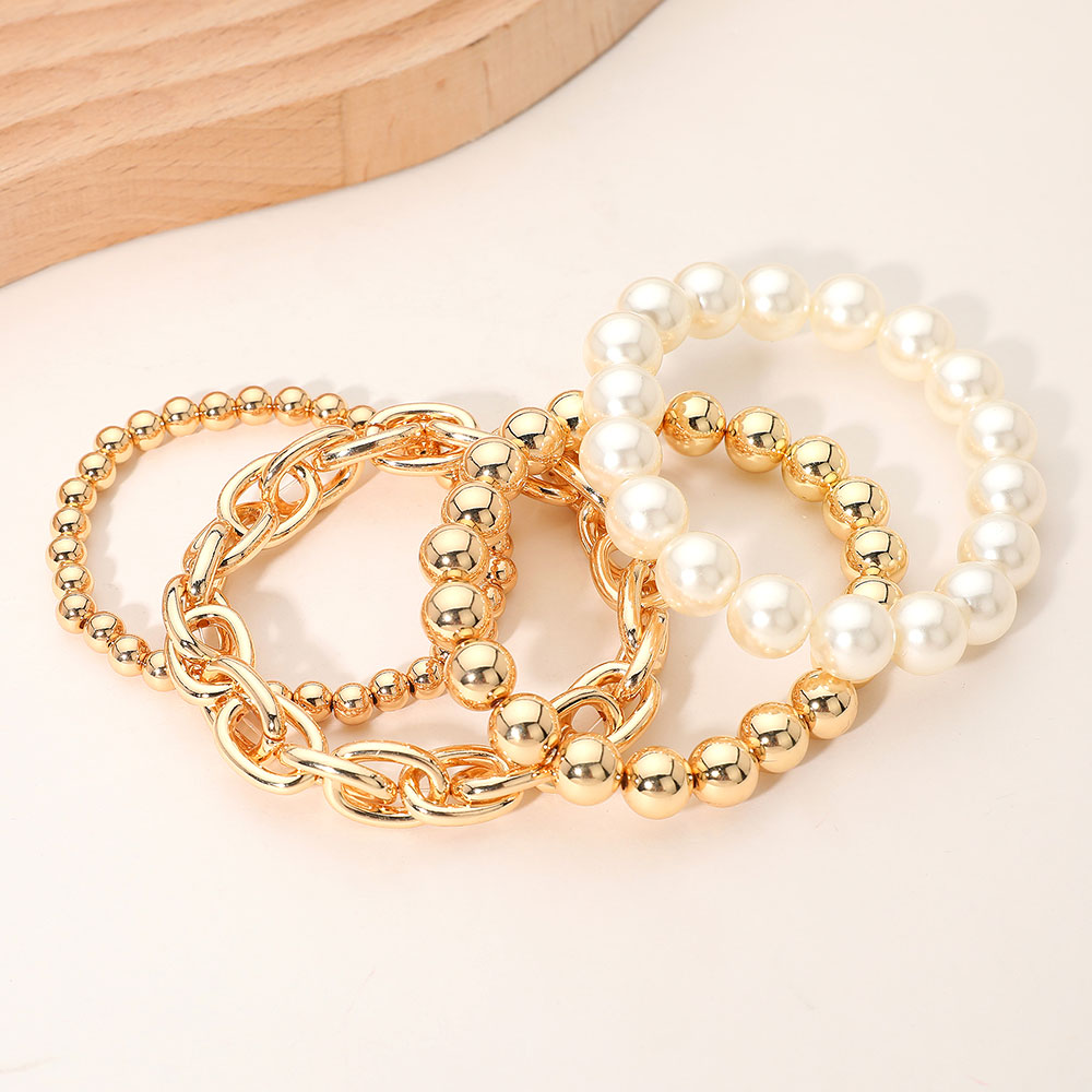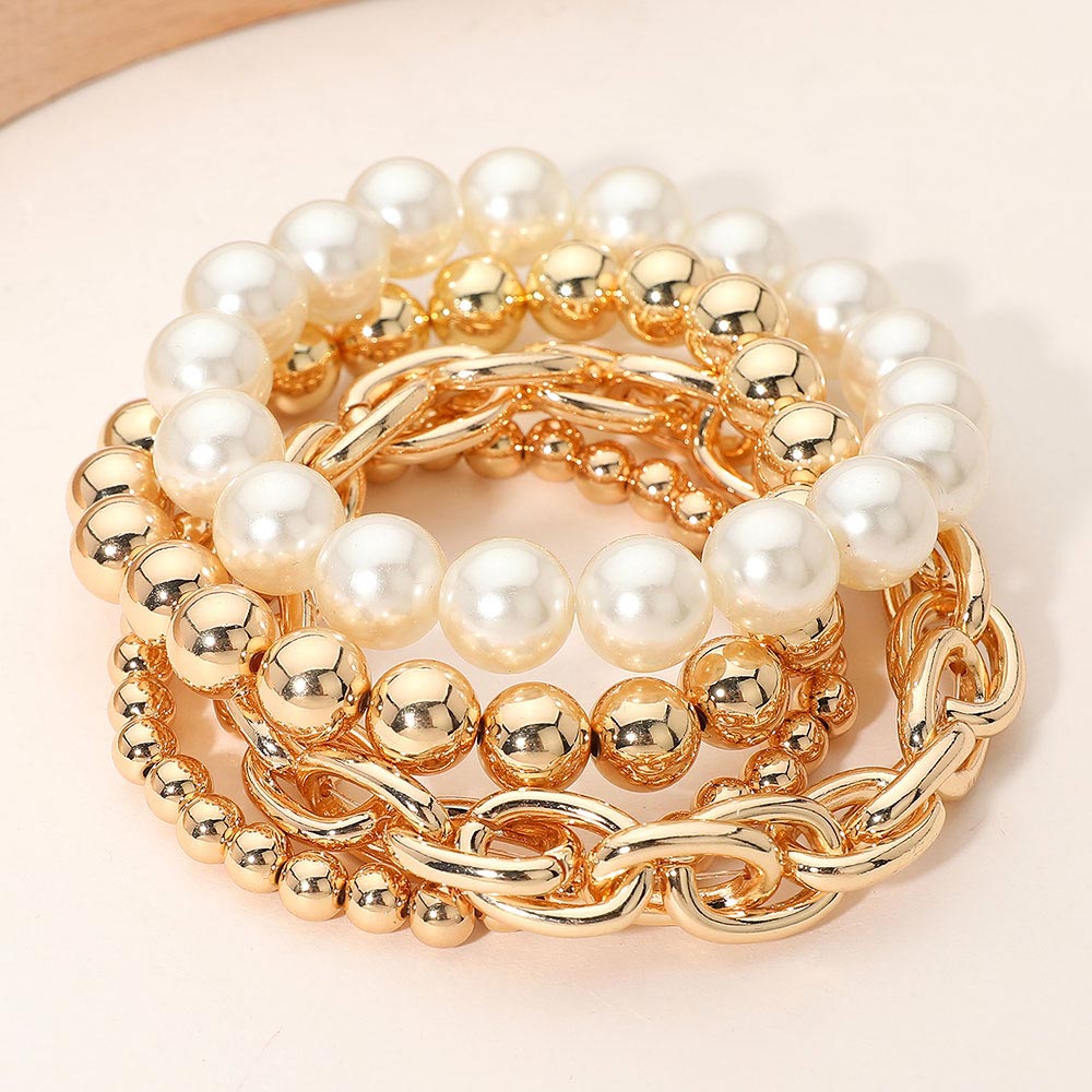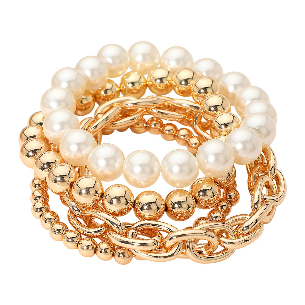 4PCS - Pearl Metal Ball Mixed Beaded Stretch Multi Layered Bracelets