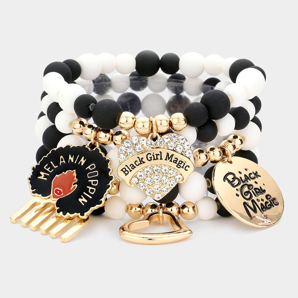 5PCS - Black Girl Magic Various Charm Multi Layered Stretchable Bracelets