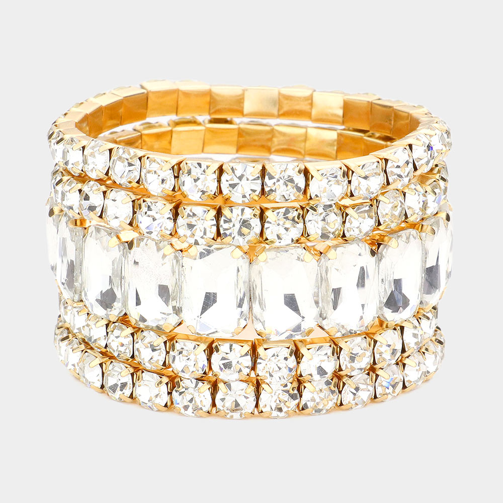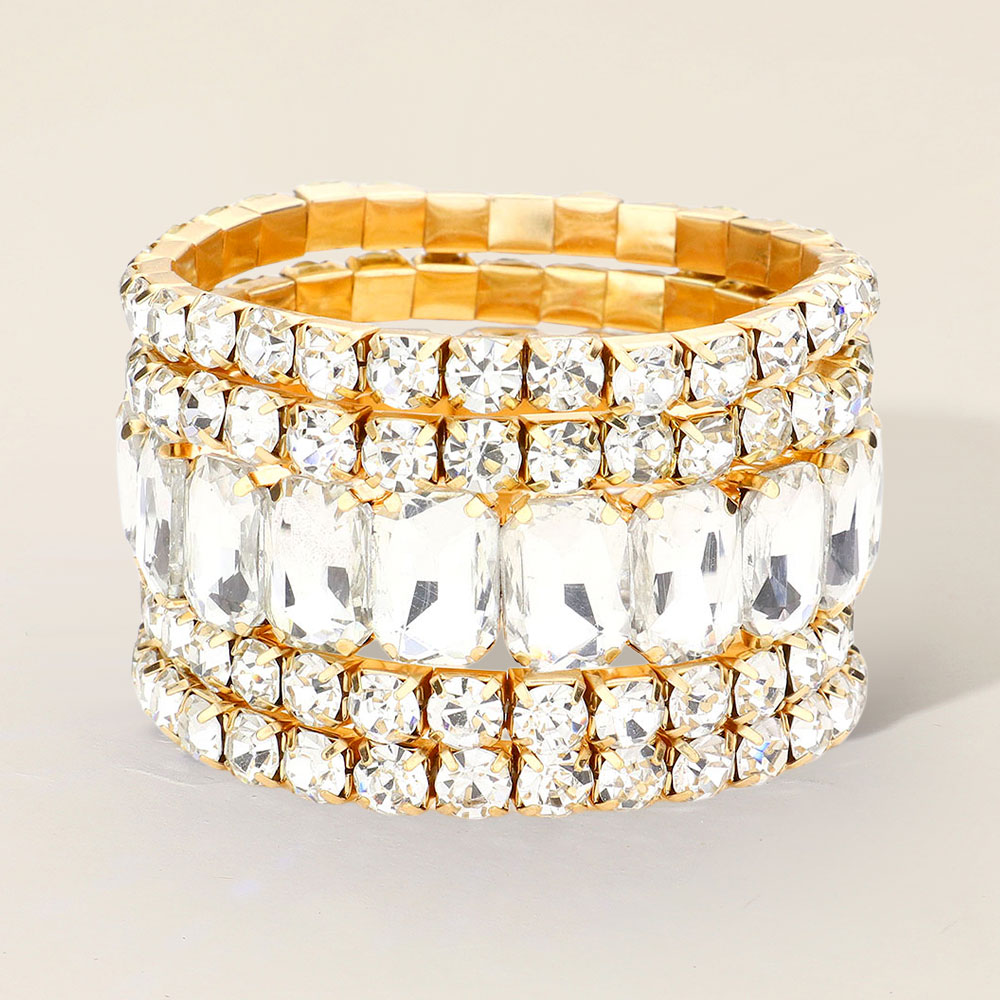 5PCS - Emerald Cut Round Stone Stretch Evening Bracelets 5PCS - Emerald Cut Round Stone Stretch Evening Bracelets 5PCS - Emerald Cut Round Stone Stretch Evening Bracelets