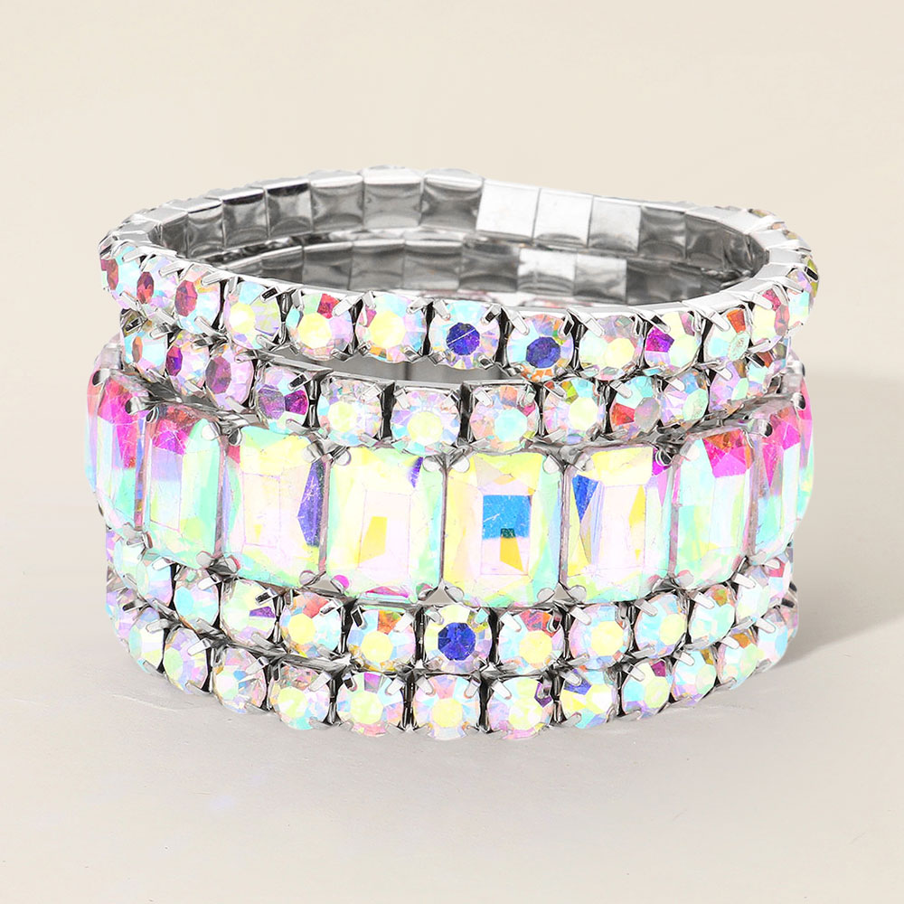 5PCS - Emerald Cut Round Stone Stretch Evening Bracelets 5PCS - Emerald Cut Round Stone Stretch Evening Bracelets 5PCS - Emerald Cut Round Stone Stretch Evening Bracelets