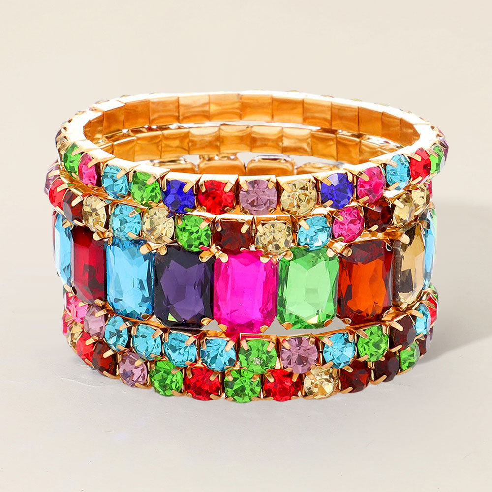 5PCS - Emerald Cut Round Stone Stretch Evening Bracelets 5PCS - Emerald Cut Round Stone Stretch Evening Bracelets 5PCS - Emerald Cut Round Stone Stretch Evening Bracelets